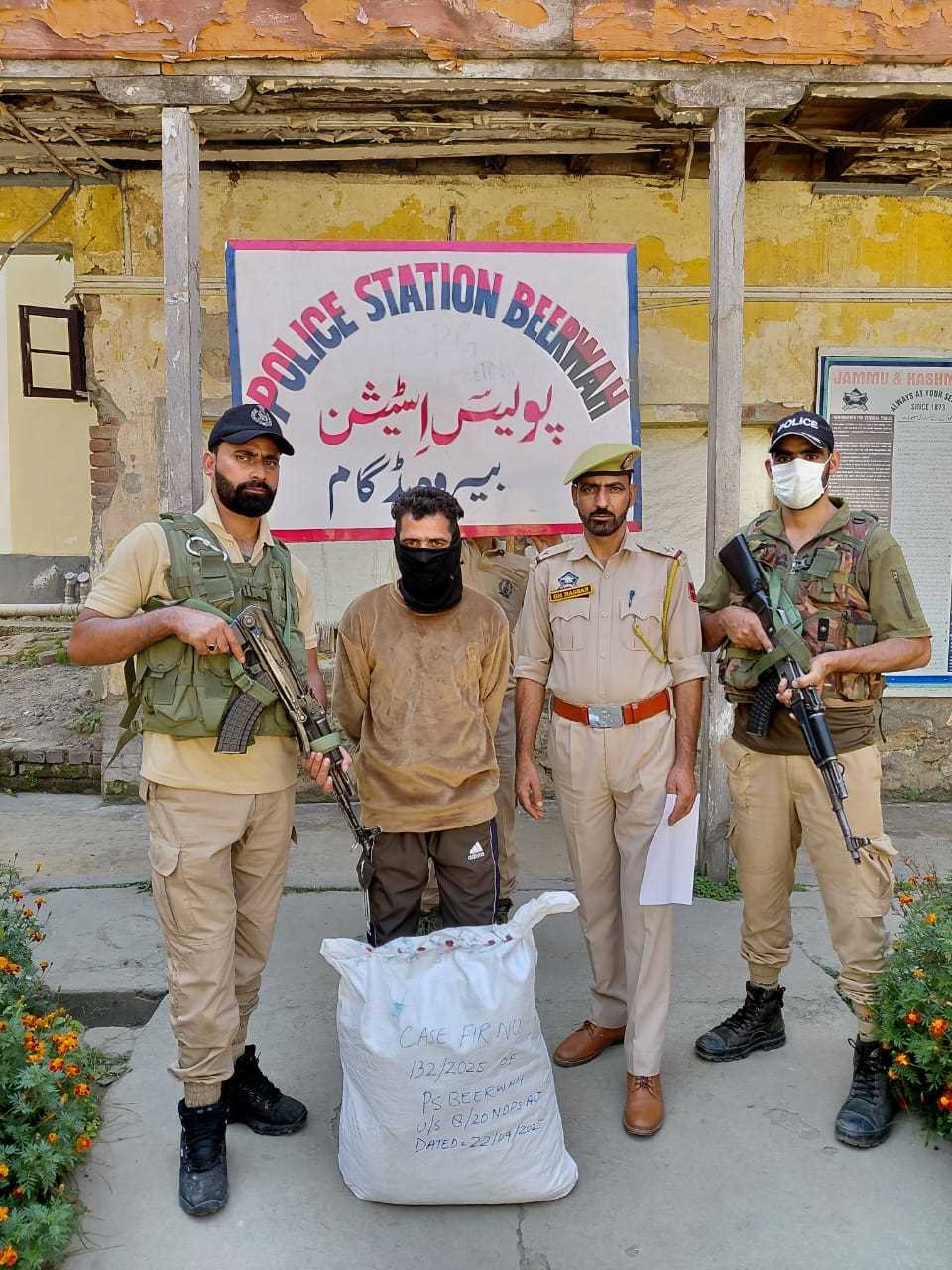 Police Station Beerwah received specific information regarding the storage of narcotic substances in a shop at Watalpora for illegal sale to the local youth. Acting promptly, a police party from Police Station Beerwah, accompanied by the Executive Magistrate, conducted a raid at the said shop. During the search, approximately 04 kilograms of contraband substance (Ganja) was recovered from the possession of Saddam Yousuf, son of Mohammad Yousuf Mir, resident of Watalpora, Beerwah, who was subsequently arrested. Accordingly, a case under FIR No. 132/2025, U/S 8/20 NDPS Act, has been registered at Police Station Beerwah and investigation has been initiated.