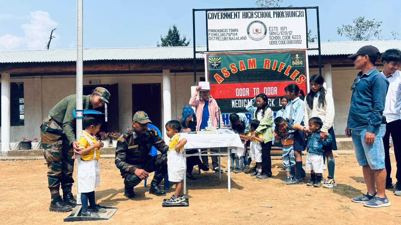 Kohima, Mar 10: In Meluri District, Nagaland, the Assam Rifles organized a door-to-door medical check-up programme in Phokhungri Town, providing essential healthcare services to local residents and school children. The initiative aimed to promote preventive health practices and increase awareness about basic healthcare in the community.