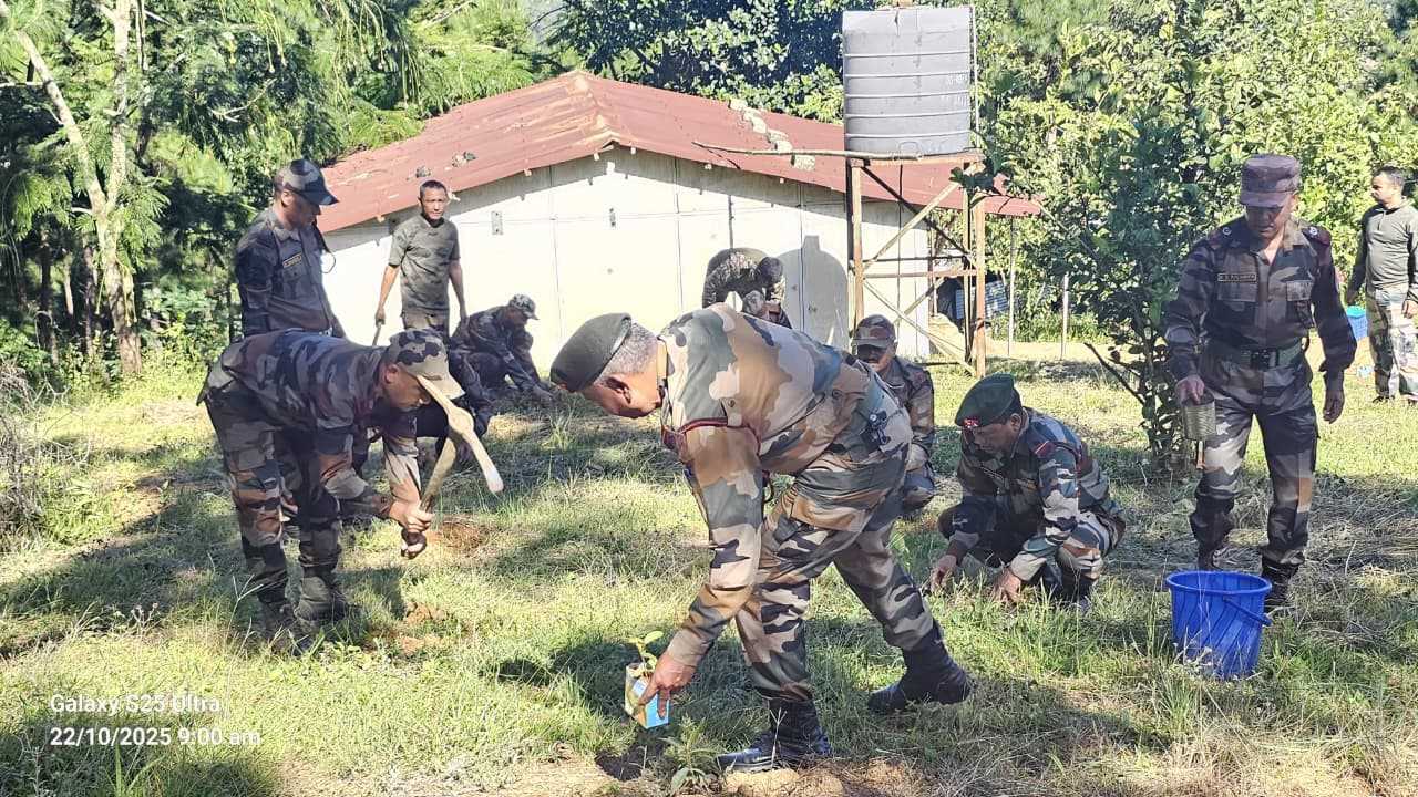 Manipur, Oct 23: The Assam Rifles organised a Tree Plantation Drive on October 22, 2025, at the Company Operating Base, Chandrakhong, in Thoubal District, Manipur, reaffirming its commitment to environmental conservation. The initiative saw active participation from 38 personnel who planted saplings across the base, aiming to promote greenery and ecological awareness.