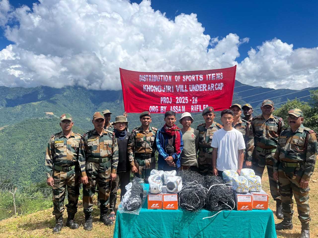 Kohima, Oct 1: In a move aimed at promoting youth engagement and community development, the Assam Rifles distributed sports items to the residents of Sangtsunger, Thanamir, Khongka, and Khongjiri villages in Kiphire, Nagaland, under the AR CAP 2025–26 initiative. The distribution included volleyballs, footballs, and nets, providing much-needed equipment to encourage sports and recreational activities in these remote border areas.