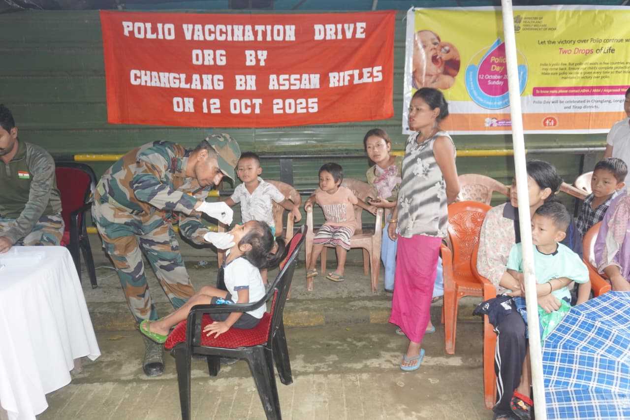 Changlang, Oct 12: Assam Rifles, in collaboration with the District Hospital Changlang, organized an Intensified Pulse Polio Immunization Programme on October 12, 2025. The initiative aimed to bolster public health efforts and support the national mission of eradicating polio in the region.