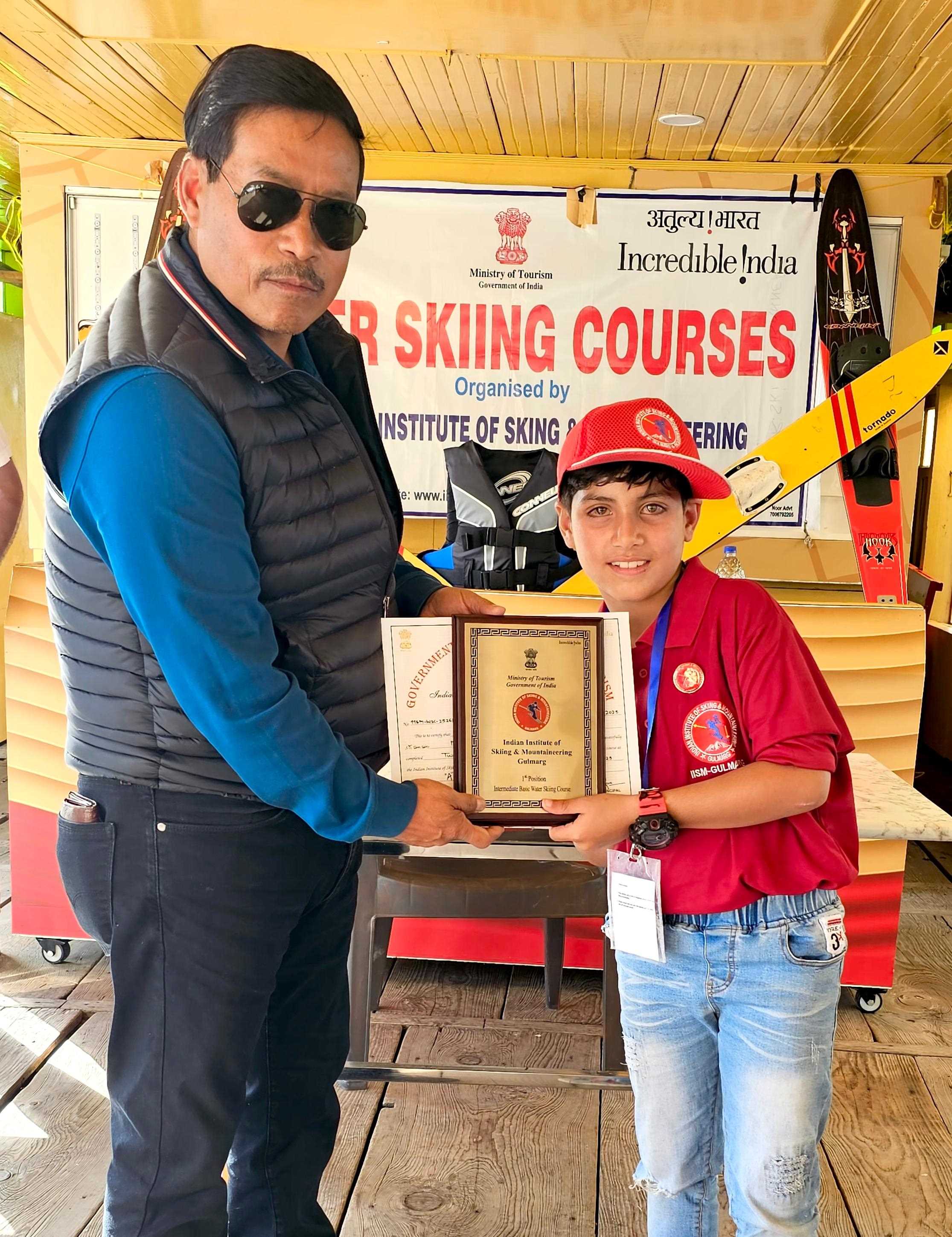 Ayaan Shah, a student of DPS Budgam, clinched 1st position in the Intermediate Water Skiing Course organized by the Indian Institute of Skiing and Mountaineering (IISM), Gulmarg. The event witnessed the participation of over 100 students from across different states of India.