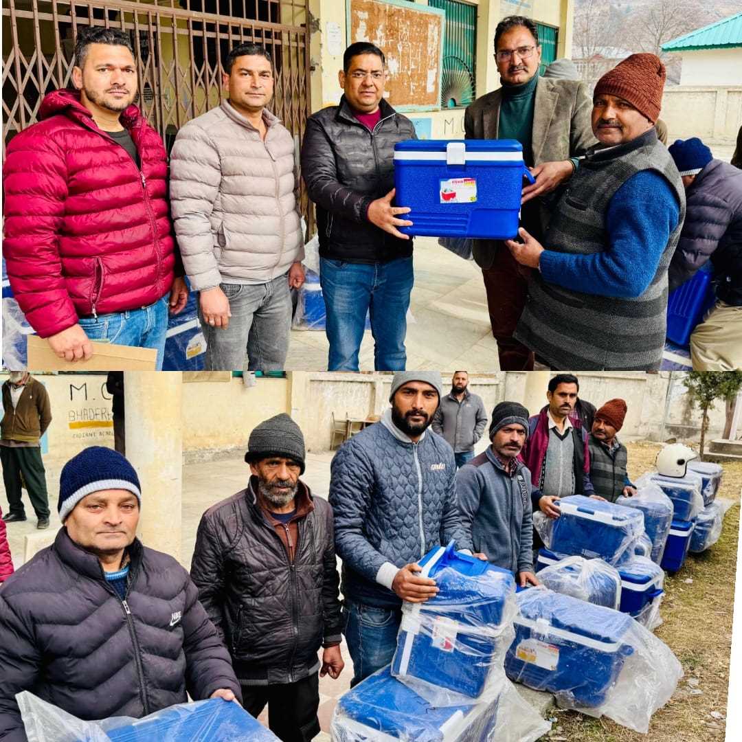 Bhaderwah, Jan 22: Additional Deputy Commissioner Bhaderwah, Sunil Bhutyal today gave away ice-boxes to local fishermen under “Competitiveness Improvement of Agriculture and Allied Sectors Project in Jammu and Kashmir (JKCIP). The initiative aims to connect fishermen directly from the field to markets, ensuring safe handling of fish and the supply of hygienic fish to consumers.
