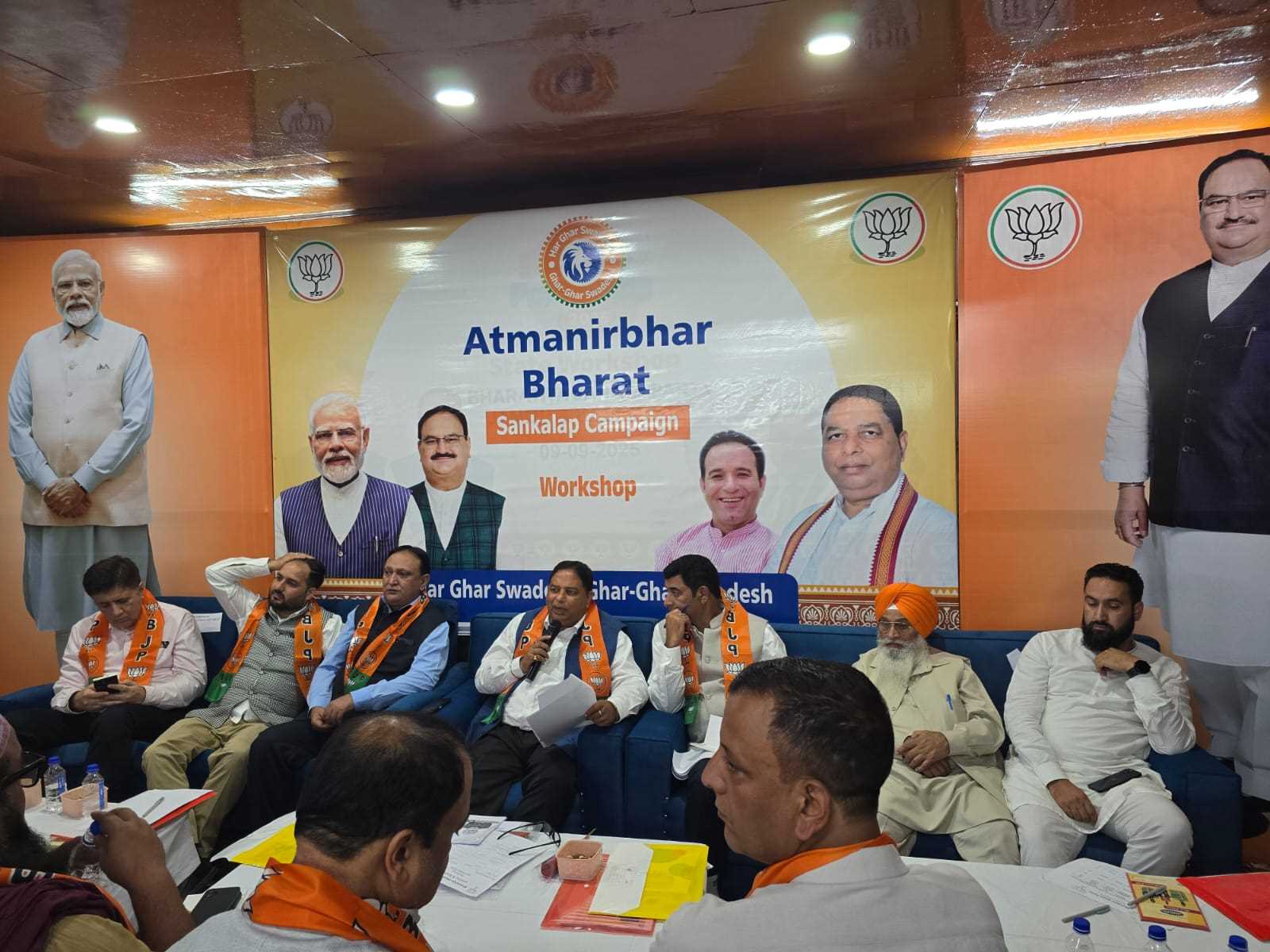 Bharatiya Janata Party (BJP) Jammu & Kashmir held a workshop at Church Lane, Srinagar, to review its preparations for the upcoming Atmanirbhar Bharat – Sankalap Campaign under the Sewa Pakhwada 2025 initiative.