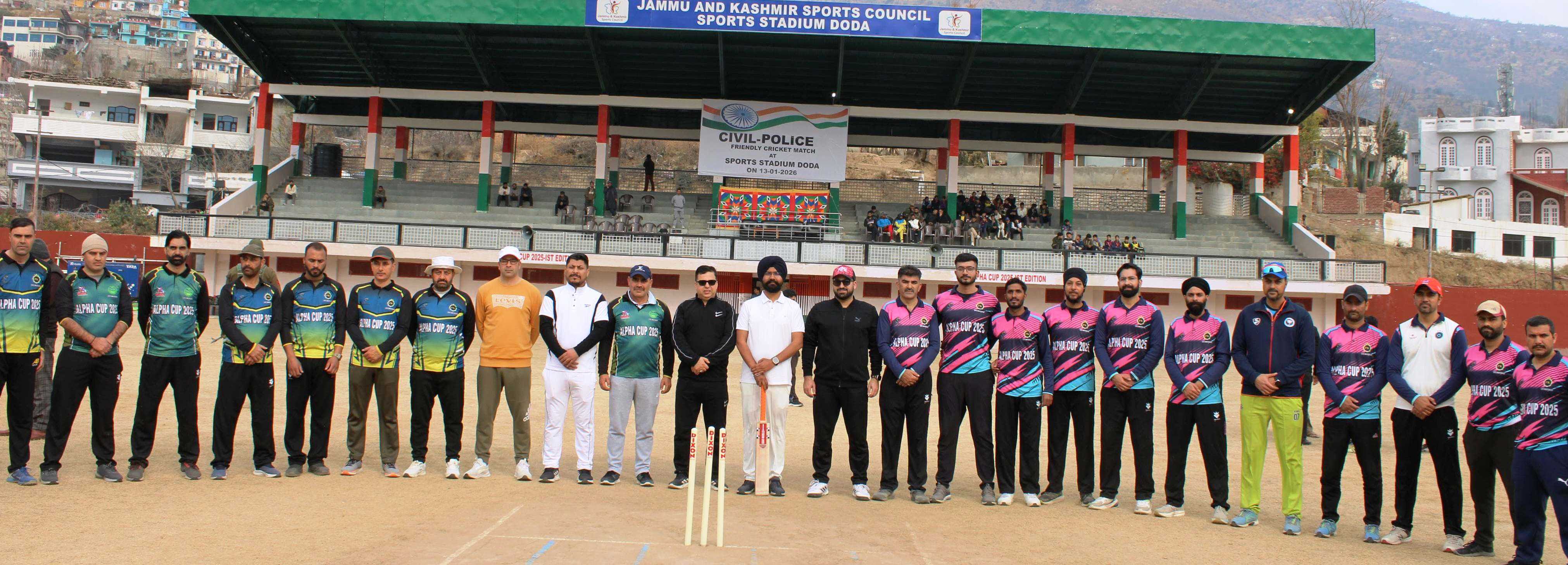 Doda, Jan 13: A Civil–Police Friendly T20 Cricket Match (leather ball) was today organised at Sports Stadium, Doda by District Administration Doda in collaboration with the Police Administration Doda with the objective of strengthening coordination, camaraderie and people-friendly policing.