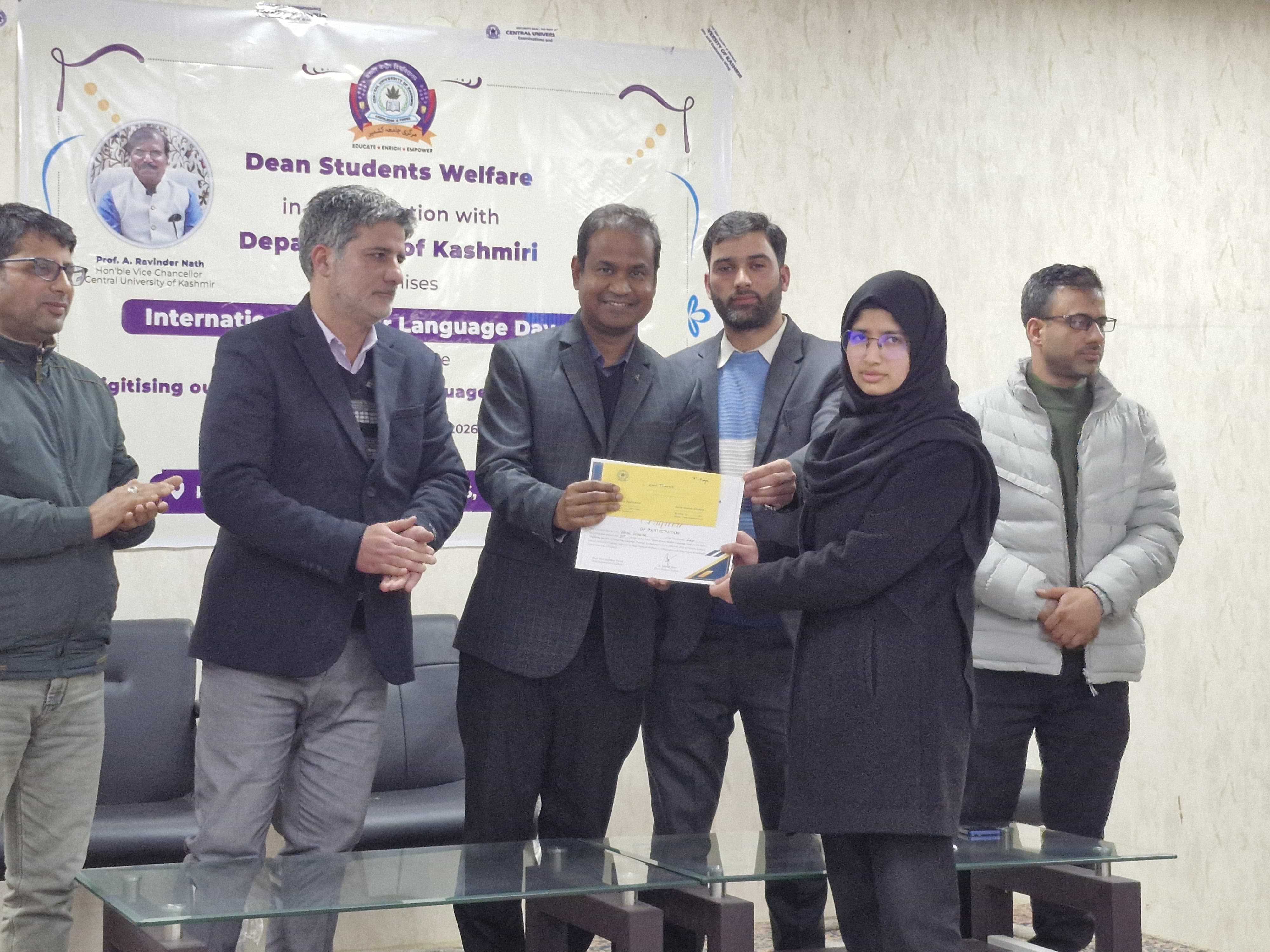 Ganderbal, Feb 21: Dean Students Welfare (DSW), in collaboration with the Department of Kashmiri, Central University of Kashmir (CUKashmir) organized a debate competition and a signature campaign on the International Mother Language Day here.