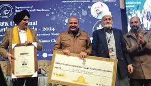 In addition, two artisans were conferred with the Certificate of Excellence, which recognises high-quality craftsmanship and emerging mastery. Smt. Mashkoora Hameed received the Certificate of Excellence in Sozni Shawl, and Shri Mir Arshad was awarded the Certificate of Excellence in Paper Mache.