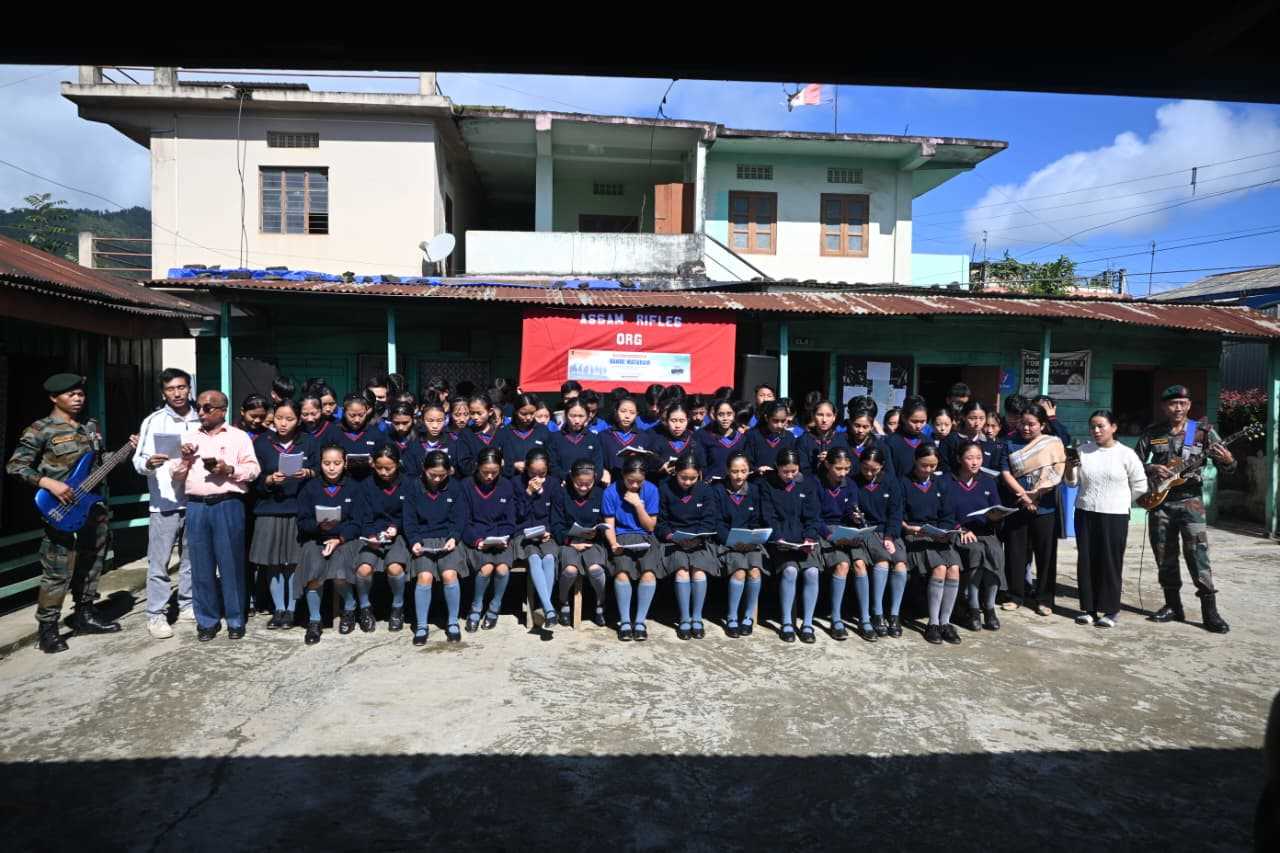 Kiphire, Nov 7: Assam Rifles personnel, along with students and teachers from various schools in Kiphire district, joined hands to celebrate the timeless national song Vande Mataram on November 7, 2025.