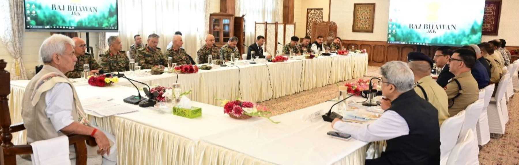 The meeting was attended by Northern Army Commander Lt Gen Pratik Sharma, Chief Secretary Atal Dulloo, DGP Nalin Prabhat, GoC 15 Corps Lt Gen Prashant Srivastava, GoC 16 Corps Lt Gen P K Mishra, GoC 9 Corps Lt Gen Rajan Sharawat, Air Vice Marshal Vikas Sharma, AOC J&K, S J M Gillani, Special DG Coordination PHQ, Principal Secretary Home Chandraker Bharti, ADGP CID Nitish Kumar, Principal Secretary to Lieutenant Governor Dr Mandeep K. Bhandari, senior officials of Armed Forces, CAPFs, J&K Police, Intelligence Agencies and civil administration.
