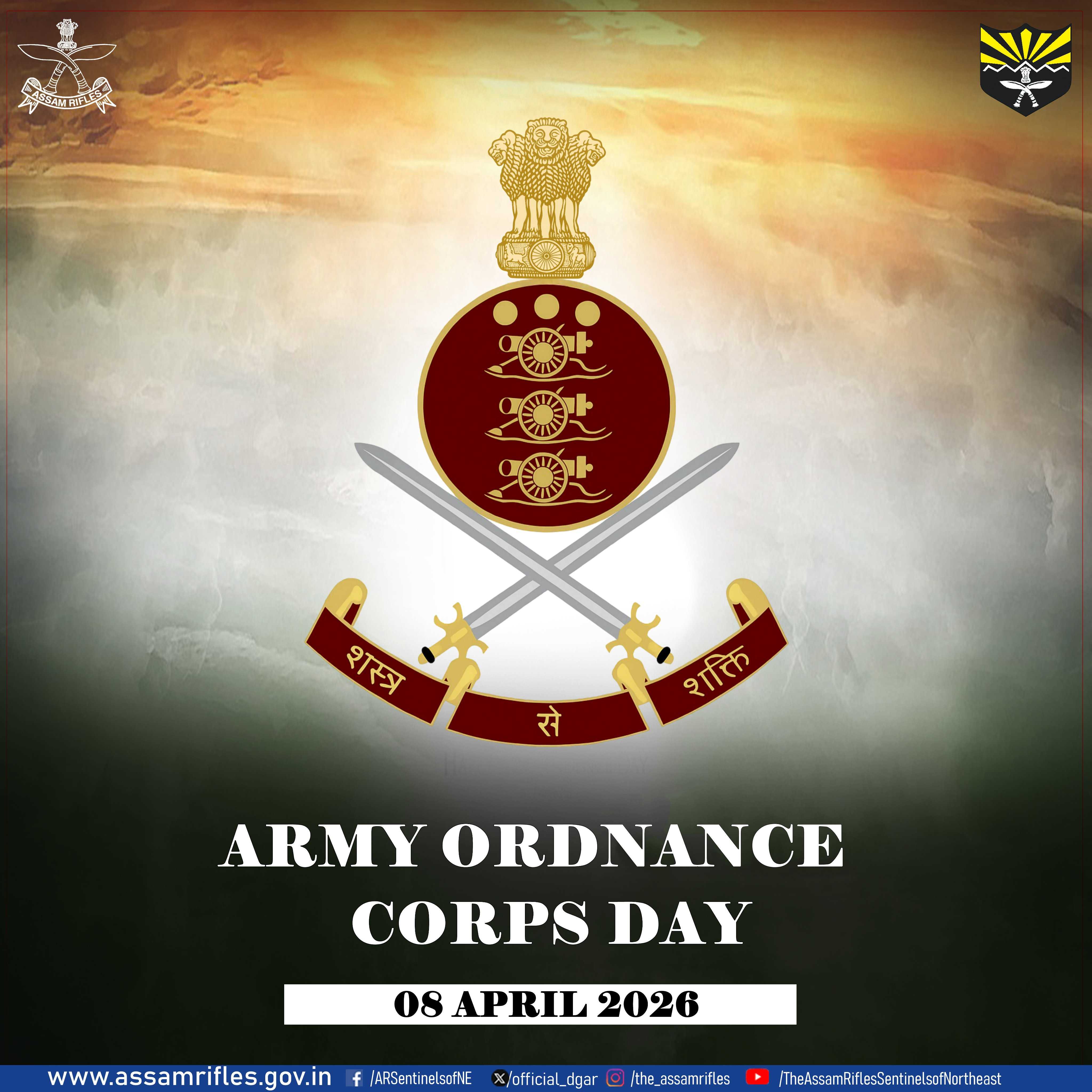 Kohima, April 8: Lieutenant General Vikas Lakhera, AVSM, SM, Director General of Assam Rifles, extended his heartfelt greetings and best wishes to all ranks, veterans, and families of the Army Ordnance Corps (AOC) on the occasion of their Corps Day.