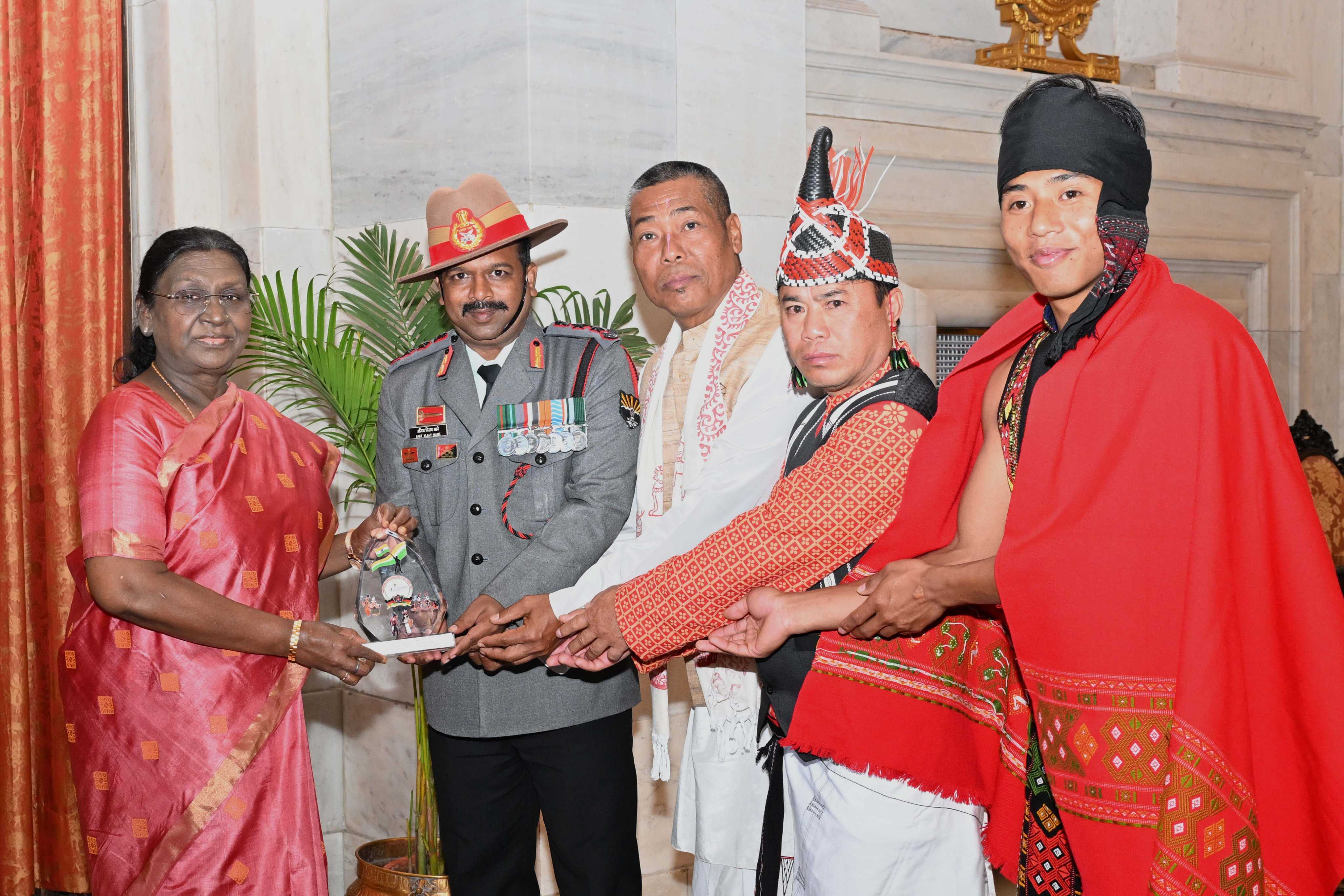 Members of the delegation shared their experiences, local challenges and aspirations of the people of Chandel and Tengnoupal. The President encouraged them to continue working towards empowerment of youth, women and marginalized communities while preserving the rich cultural heritage of Manipur.