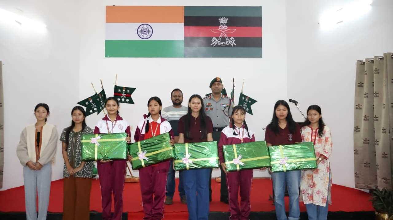Haflong, Dima Hasao, Nov 8: In a heartfelt initiative to empower underprivileged tribal girls, Smt Rohini Patwardhan, a philanthropist from Pune, donated laptops to the NGO AROH (A Ray of Hope) Society through Assam Rifles under Spear Corps.