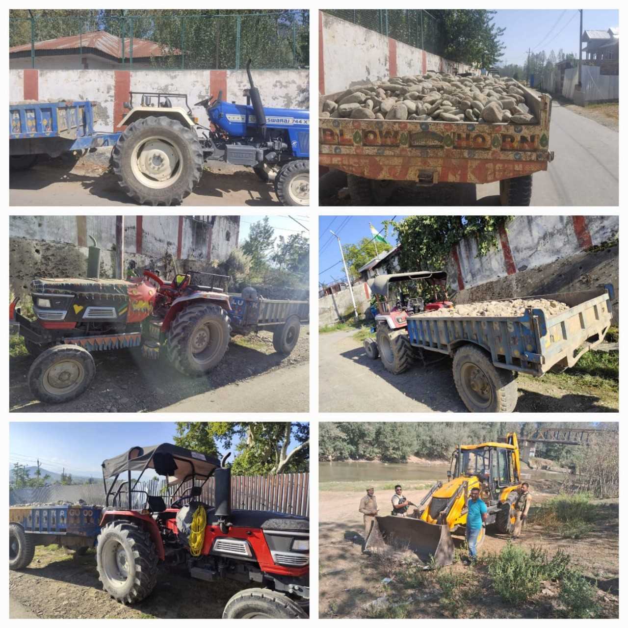 During the drive, police teams from Police Post Langate, Police Post Chogul and Police Post Magam under the supervision of senior officers, seized 06 tractors and 01 JCB found involved in illegal excavation and transportation of minerals.