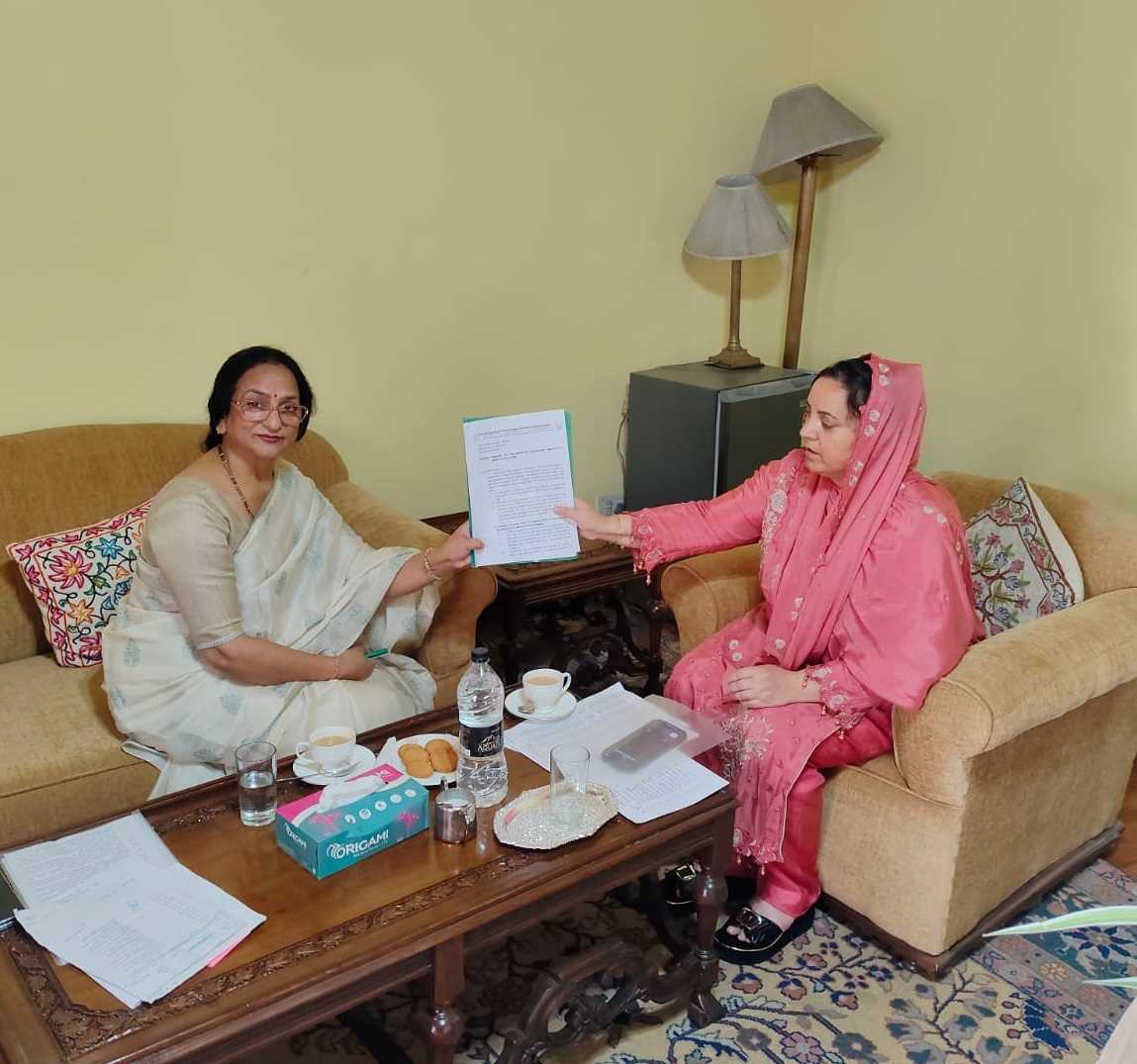 Minister for Health and Medical Education, Social Welfare and Education, Sakeena Itoo today held a brief meeting with Chairperson Jammu and Kashmir Board of Professional Entrance Examination (JKBOPEE), Prof. Minu Mahajan to discuss ways and means for strengthening of professional education opportunities across J&K.