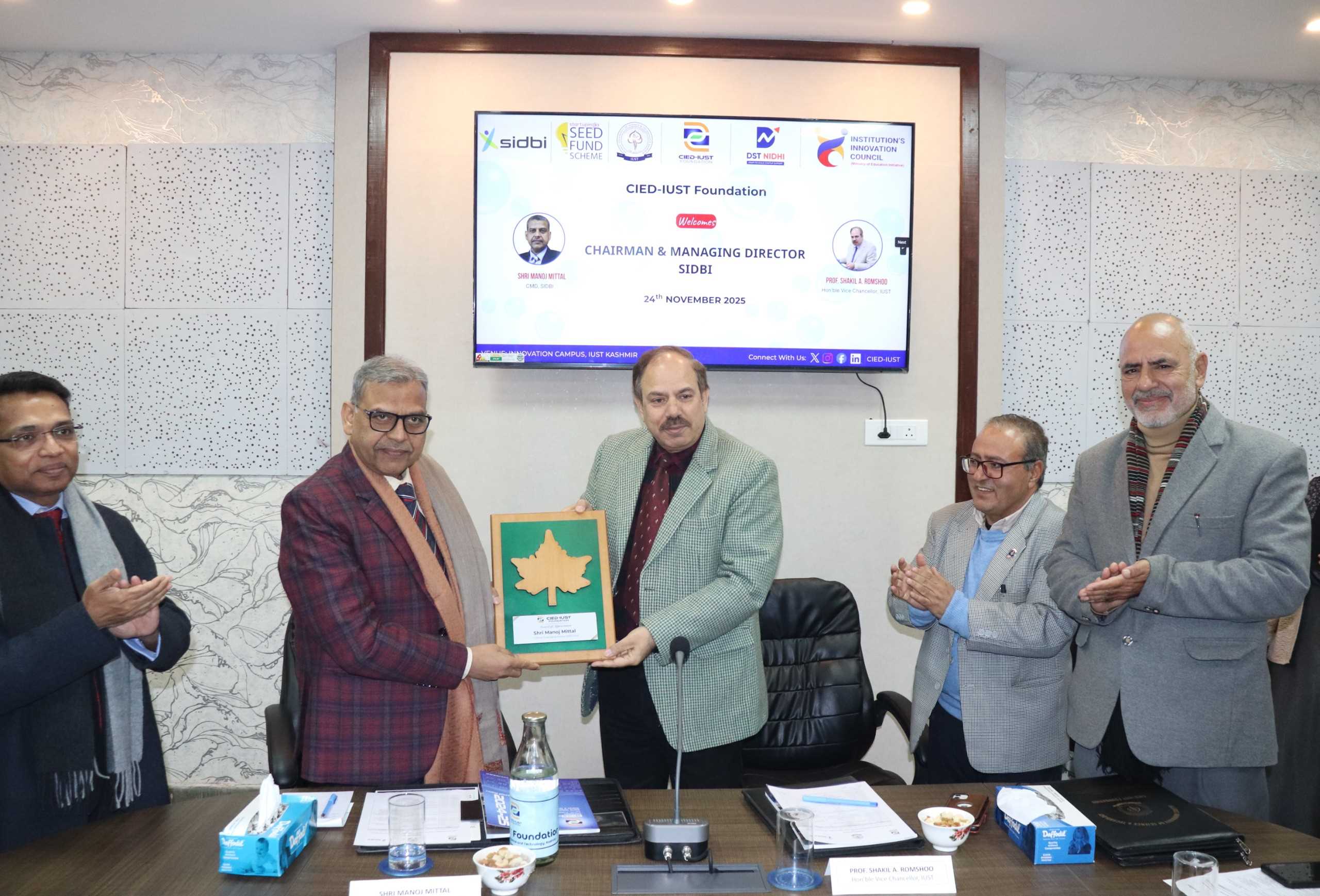 Vice Chancellor IUST, Prof. Shakil A. Romshoo, along with Registrar Prof. Abdul Wahid, Dean Academic Affairs Prof. A. H. Moon, and CEO CIED–IUST Foundation Prof. Parvez A. Mir graced the programme and interacted with the delegation. Prof. Romshoo emphasized the pivotal role of universities in advancing the region’s innovation ecosystem and highlighted IUST’s commitment through the establishment of the CIED–IUST Foundation as a Section-8 company dedicated to entrepreneurship development.