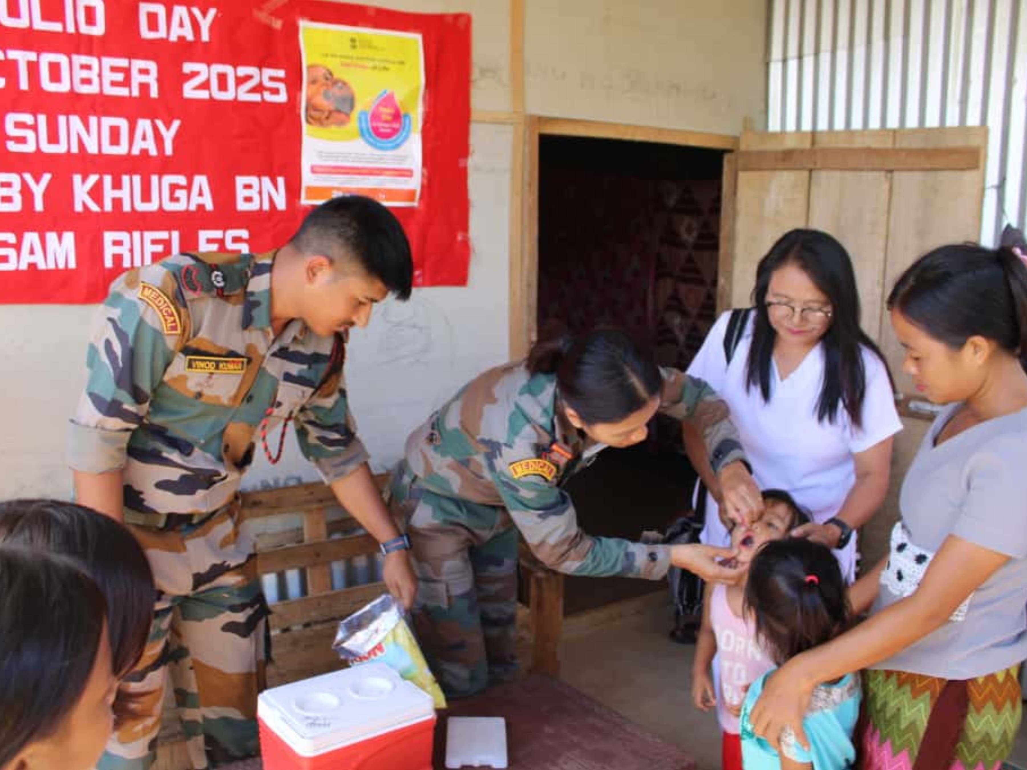 Buallian, Nagaland, Oct 14: : Assam Rifles under Spear Corps conducted a polio vaccination drive for 107 children at Buallian IDP Camp as part of the Pulse Polio initiative.