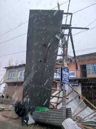 The Mehjoor Nagar incident is part of a wider trail of destruction caused by unusually strong winds across the Valley. In almost every locality, shop signboards were damaged, while tin-shed fencing and temporary structures of several houses were either partially damaged or completely uprooted. Uprooted trees, fallen branches and loose metal sheets were reported from multiple areas, adding to the risk for commuters.