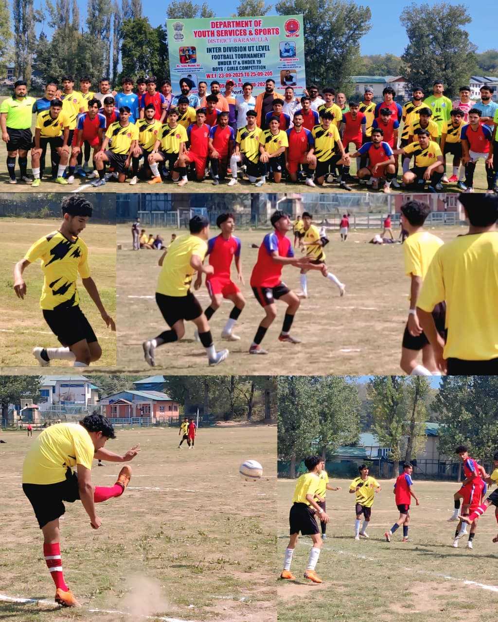 The three-day Inter-Division UT Level Under-19 Boys Football Competition commenced today with great enthusiasm at Showkat Ali Stadium, Khawaja Bagh Baramulla. The mega event is being organised by the Department of Youth Services & Sports J&K under the chairmanship of Ms. Anuradha Gupta (JKAS), Director General, Youth Services & Sports J&K, and the supervision of Mr. Rashid Kohli (JKAS), Joint Director Youth Services & Sports, Kashmir Province, with DYSSO Baramulla as the host.