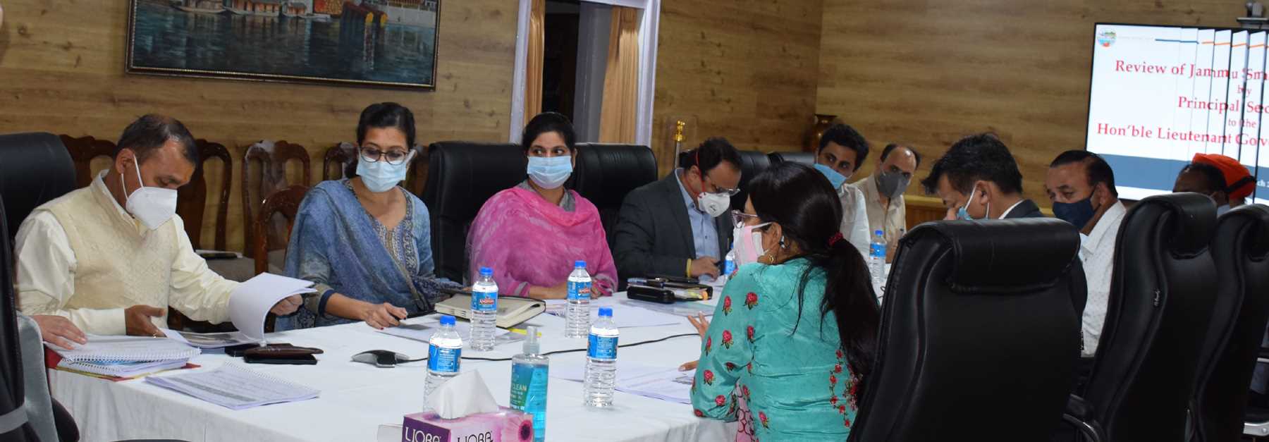Principal Secretary to Lt Governor, Nitishwar Kumar today reviewed the progress on various projects of Jammu Smart City limited (JSCL) and Srinagar Smart City Limited (SSCL) here at Raj Bhavan.