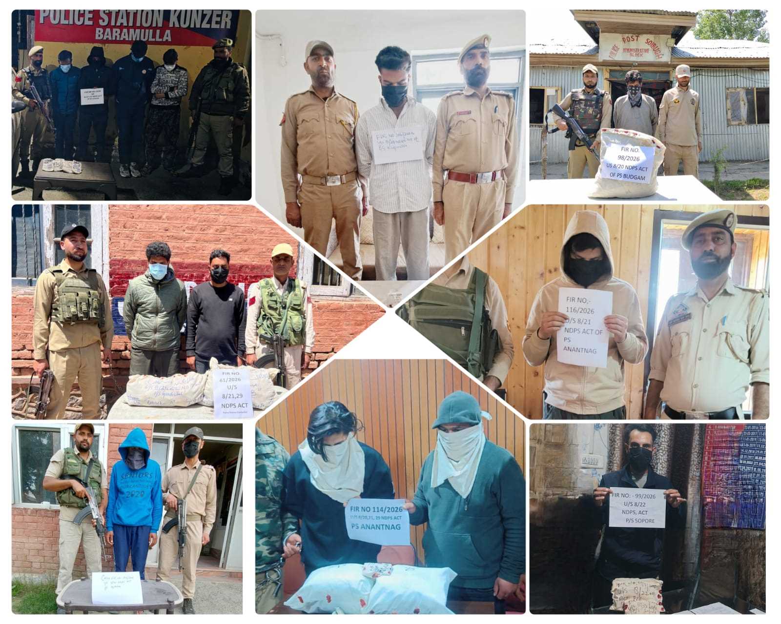 Similarly, during naka checking at Donipawa, one person identified as Nisar Ahmad Shergojri of Sherpora was apprehended with a substance resembling poppy straw. In another operation, Police Post Bus Stand apprehended Adnan Ishaq Mir of Ashajipora at Tarbal Chee and recovered approximately 2 grams of heroin-like substance from his possession.