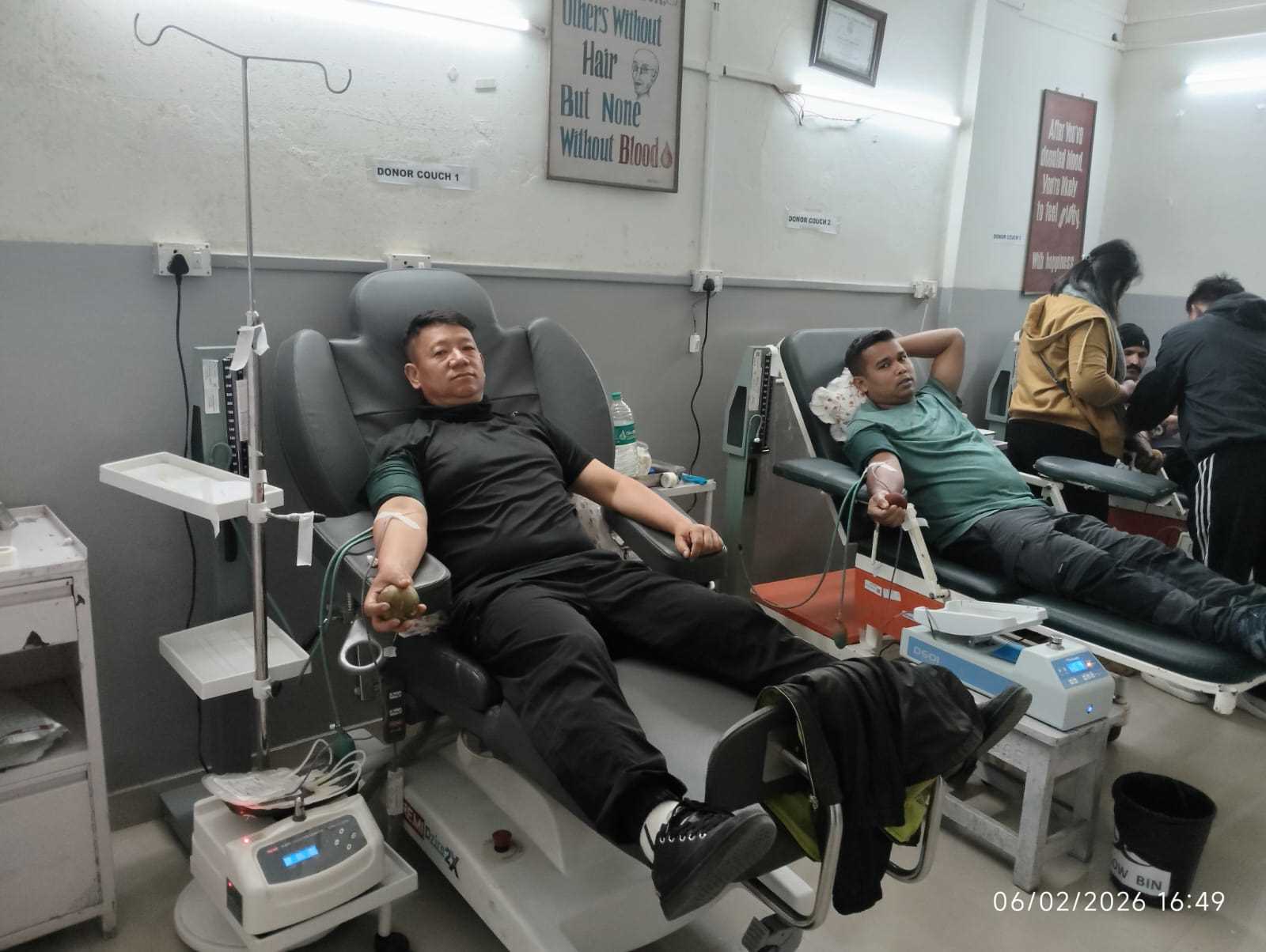 Kohima, Feb 8 Assam Rifles personnel extended timely humanitarian assistance by donating blood to a five-year-old girl undergoing treatment for Acute Lymphoblastic Leukemia at Naga Hospital Authority, Kohima. The young patient required an urgent blood and platelet transfusion due to critically low haemoglobin and platelet levels.