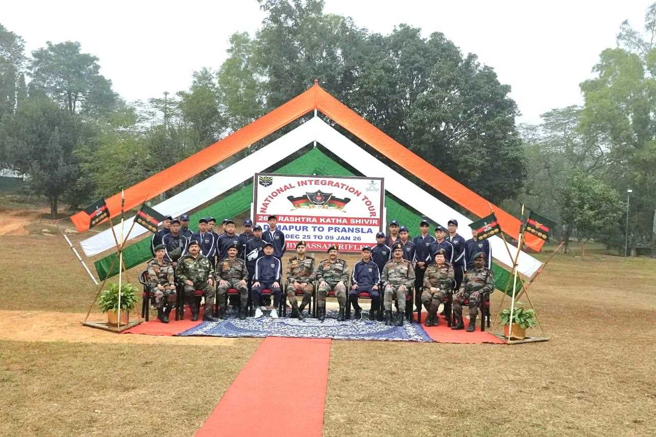 Dimapur, Dec 27: The Assam Rifles flagged off a National Integration Tour from Dimapur, Nagaland, to Pransla, Gujarat, on December 26, 2025, aimed at fostering patriotism, cultural understanding, and national unity among young students.