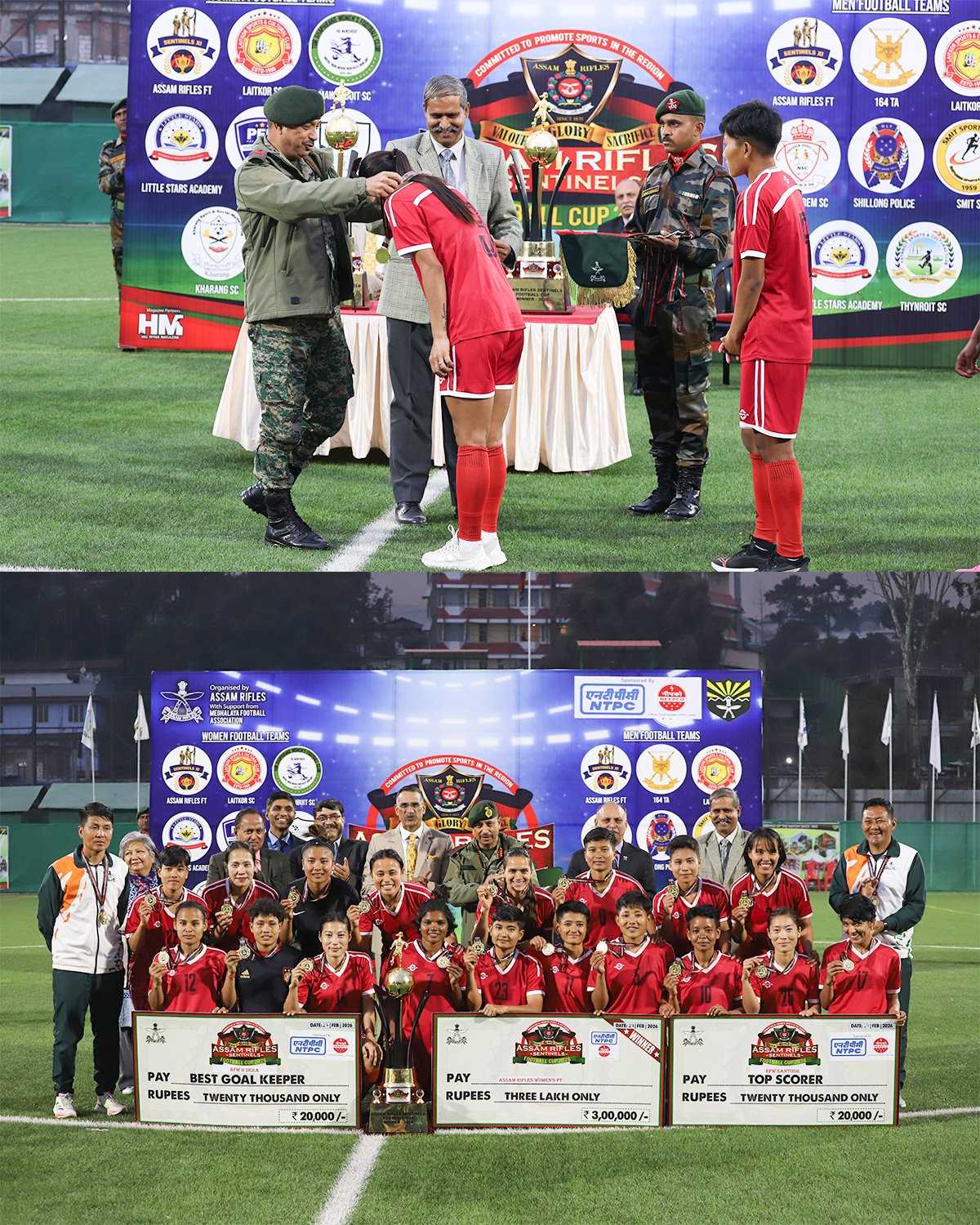 The champions received the prestigious Sentinels Cup Trophy and a cash prize of ₹3 lakh, inspiring young athletes across the North East. The grand finale and closing ceremony were graced by Lt Gen Vikas Lakhera, AVSM, SM, as Chief Guest. Senior officers of Assam Rifles, civil dignitaries, sports officials, and enthusiastic spectators added prestige and grandeur to the event.