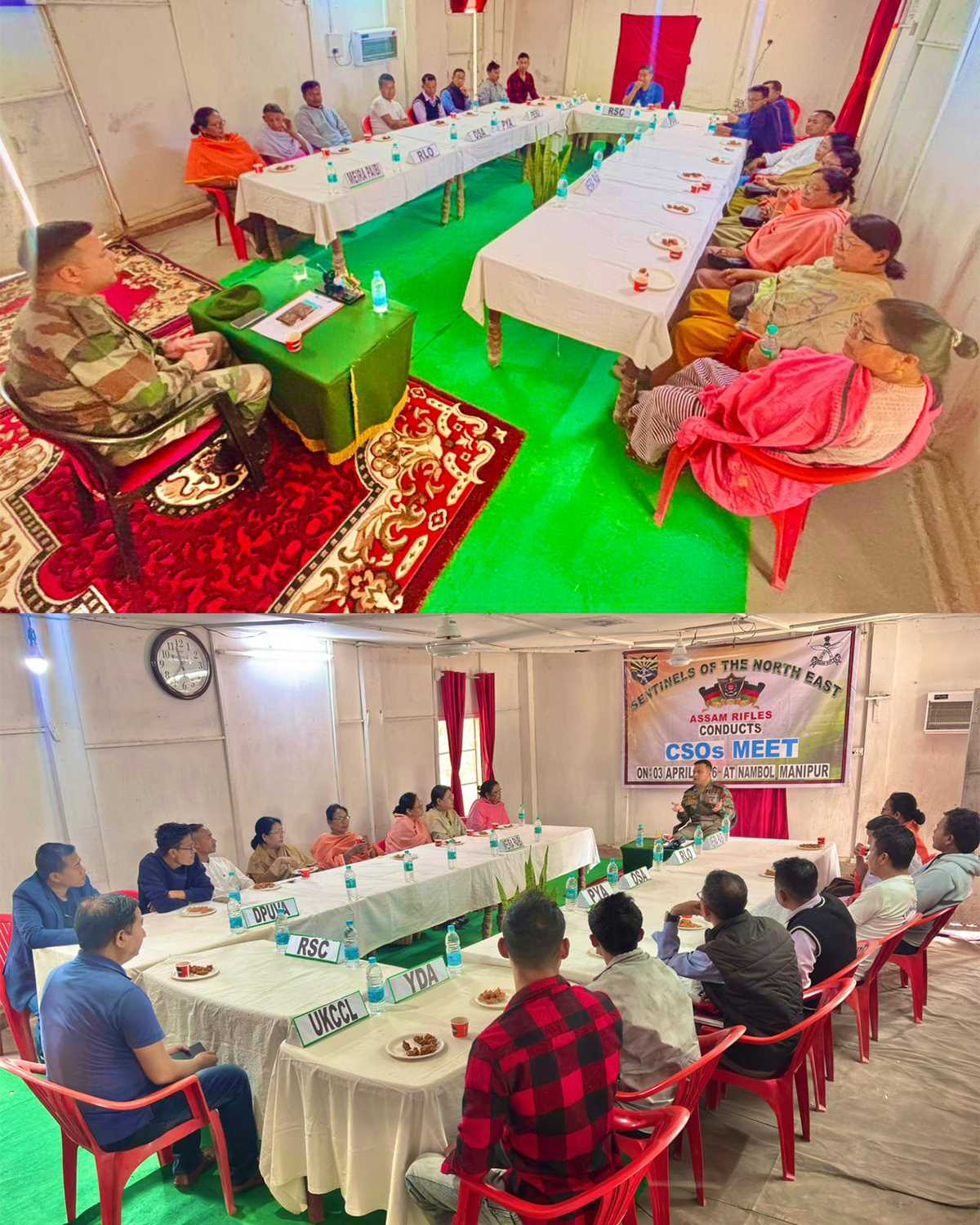 Nambol,, April 5: Assam Rifles under #SpearCorps organised a structured interaction meeting with representatives of multiple Civil Society Organisations (CSOs) at Nambol in Bishnupur District on April 3, 2026. The initiative was aimed at fostering civil-security cooperation, enhancing information sharing, and promoting community-driven stability within the Nambol–Oinam area.