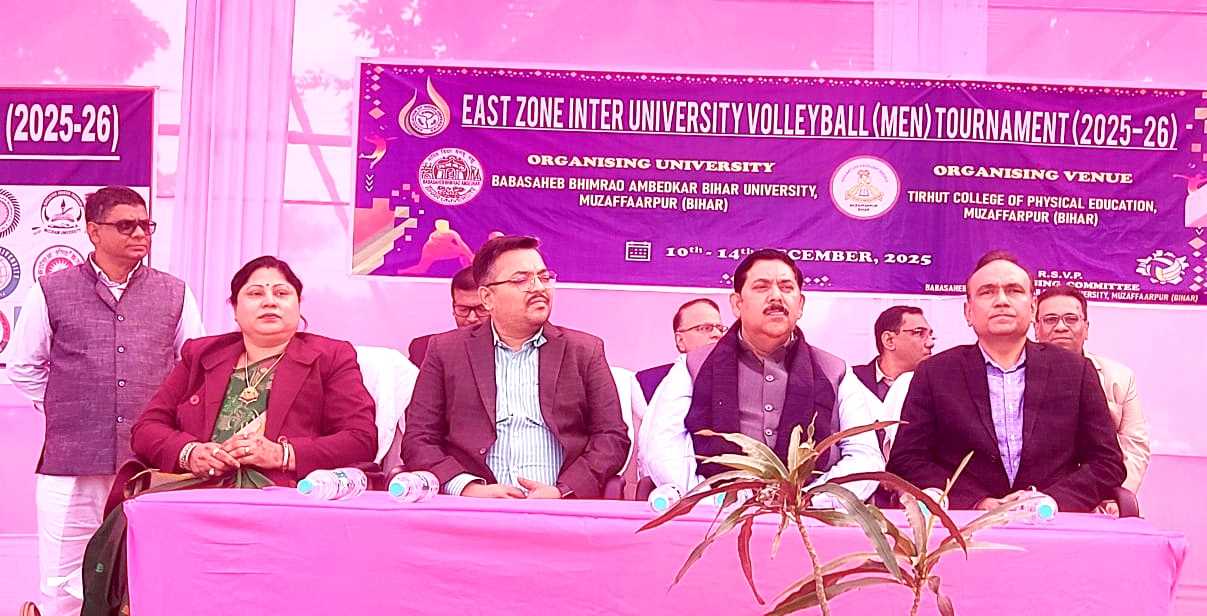 Muzaffarpur, Dec 10: The much-anticipated East Zone Inter-University Volleyball (Men) Championship, hosted by B.R. Ambedkar Bihar University (BRABU), was formally inaugurated today, December 10, at the Tirhut College of Physical Education in Jhapaha, Muzaffarpur. B.R. Ambedkar Bihar University Inaugurates Championship with 53 University Teams, bringing together competitors from across the East Zone for the tournament that will run until December 14.
