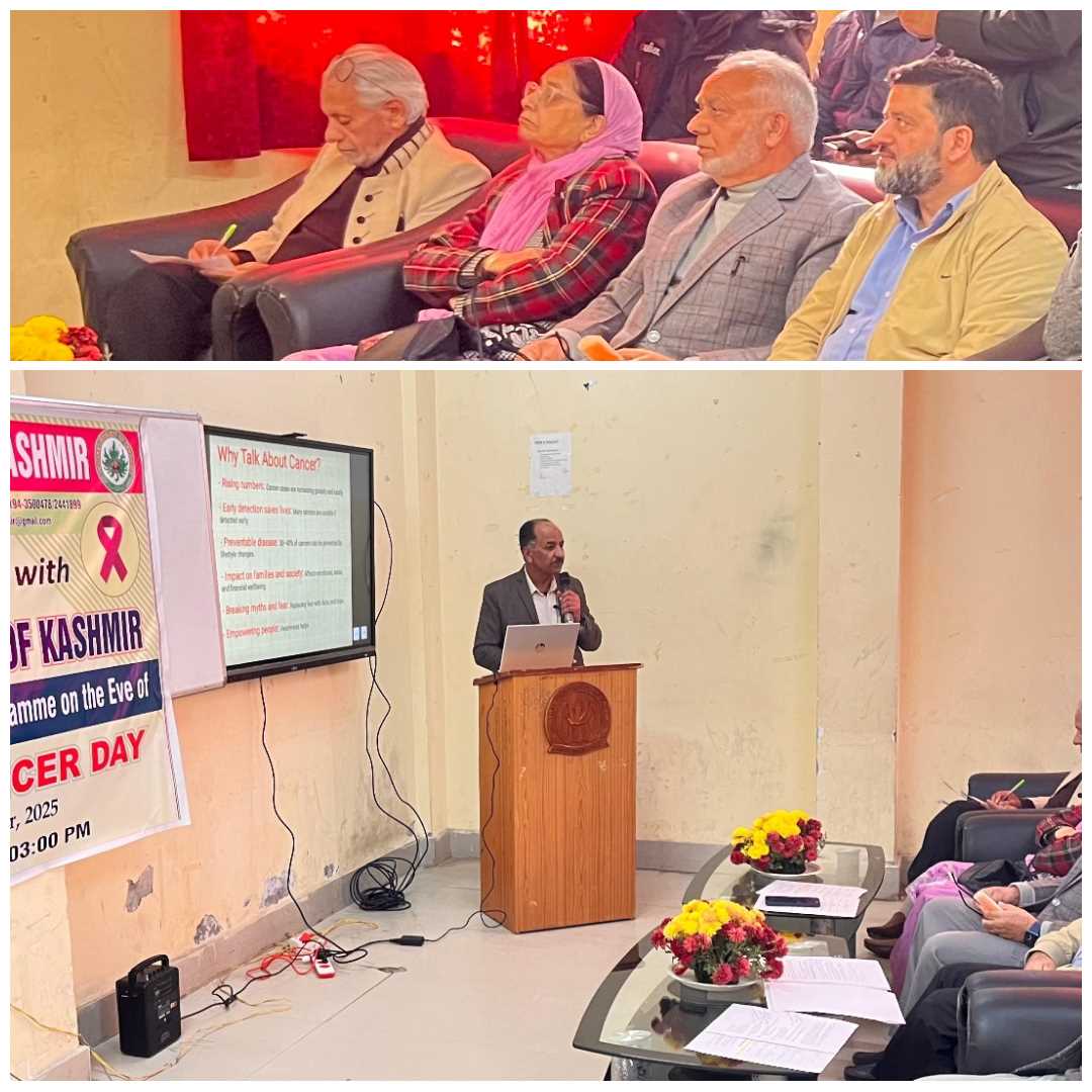 Health Centre and the School of Life Sciences (SLS), Central University of Kashmir (CUK) in collaboration with the Cancer Society of Kashmir (CSK), organized a Cancer Awareness Programme to observe National Cancer Awareness Day, at Science Campus, Nunar on Thursday.