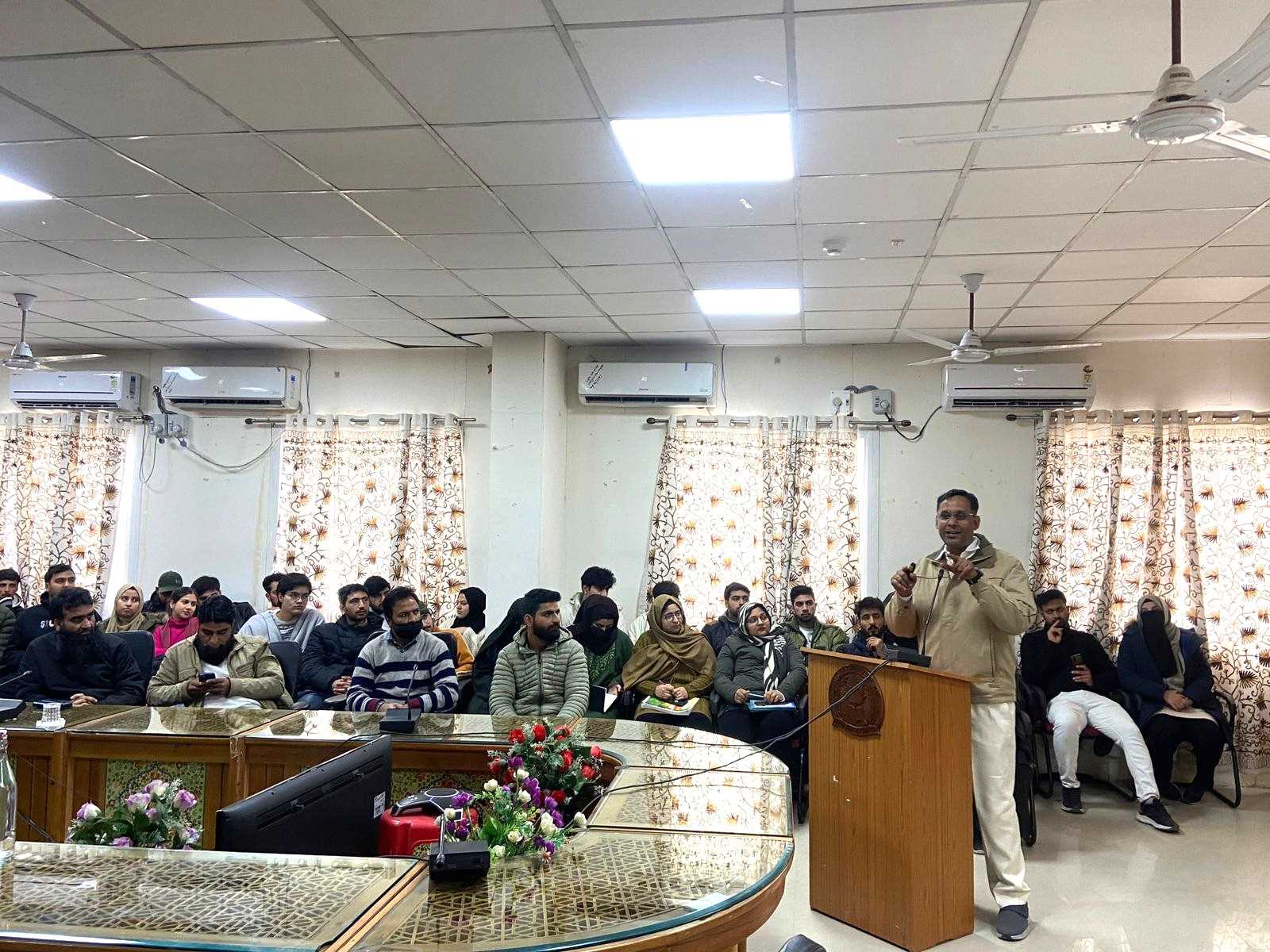 A meditation session was conducted by Mr. Reyazul Wani, Sr. Lecturer, Deptt of School Education (Meditation and Spiritual Trainer), giving students an opportunity to experience mental calmness and relaxation. The session emphasized the importance of inner balance and mindfulness in countering the pressures of continuous digital engagement.