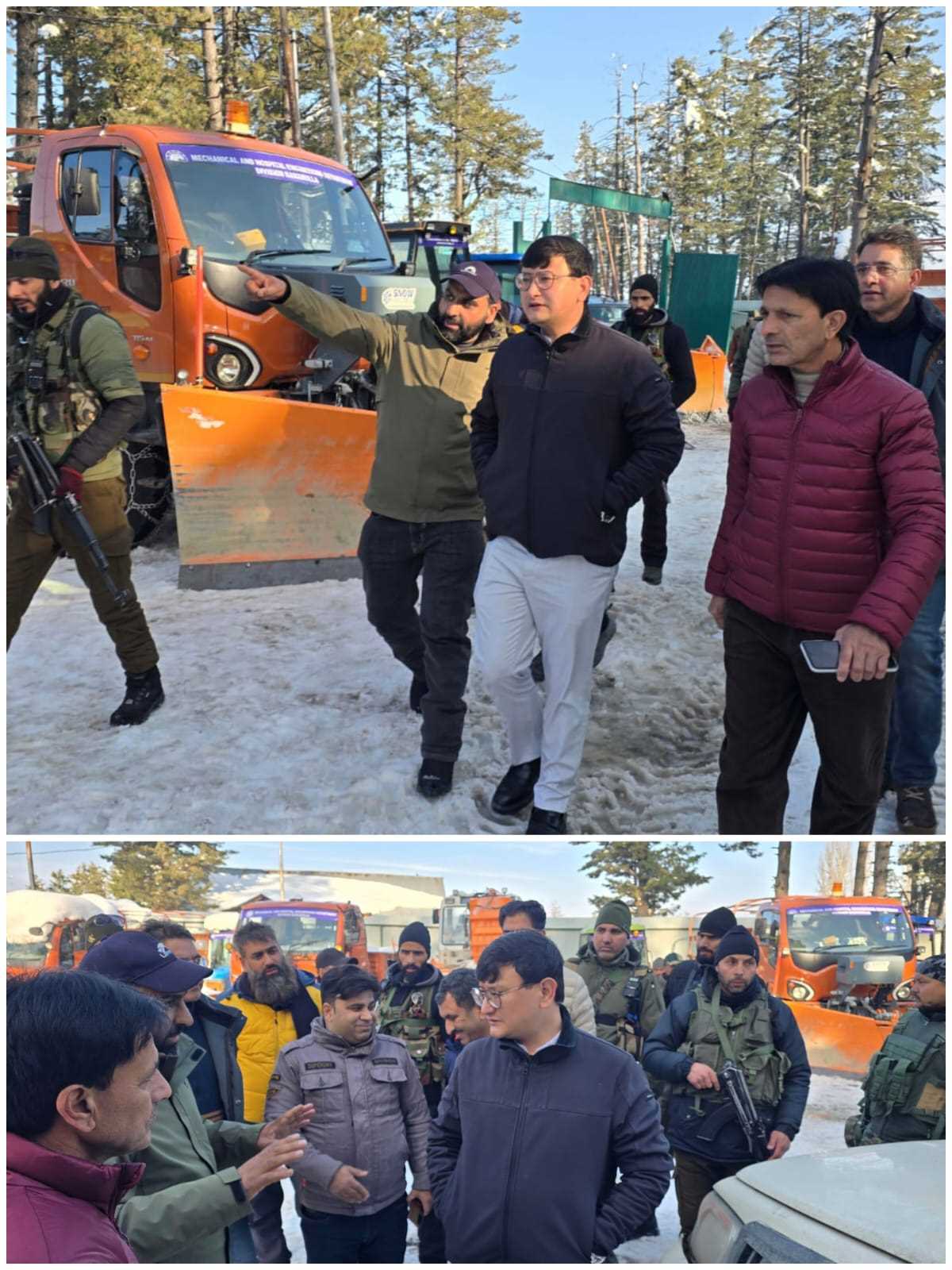Later, Minga Sherpa inspected the Snow Clearance Control Room at Tangmarg to assess its functioning and interacted with anti-skid chain vendors, issuing necessary directions to ensure