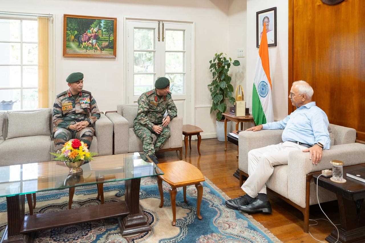 Imphal, April 14: Lt Gen Vikas Lakhera, AVSM, SM, Director General of Assam Rifles, called on Shri Ajay Kumar Bhalla, Governor of Manipur, to review the prevailing security situation and ongoing efforts aimed at maintaining peace and stability in the region.