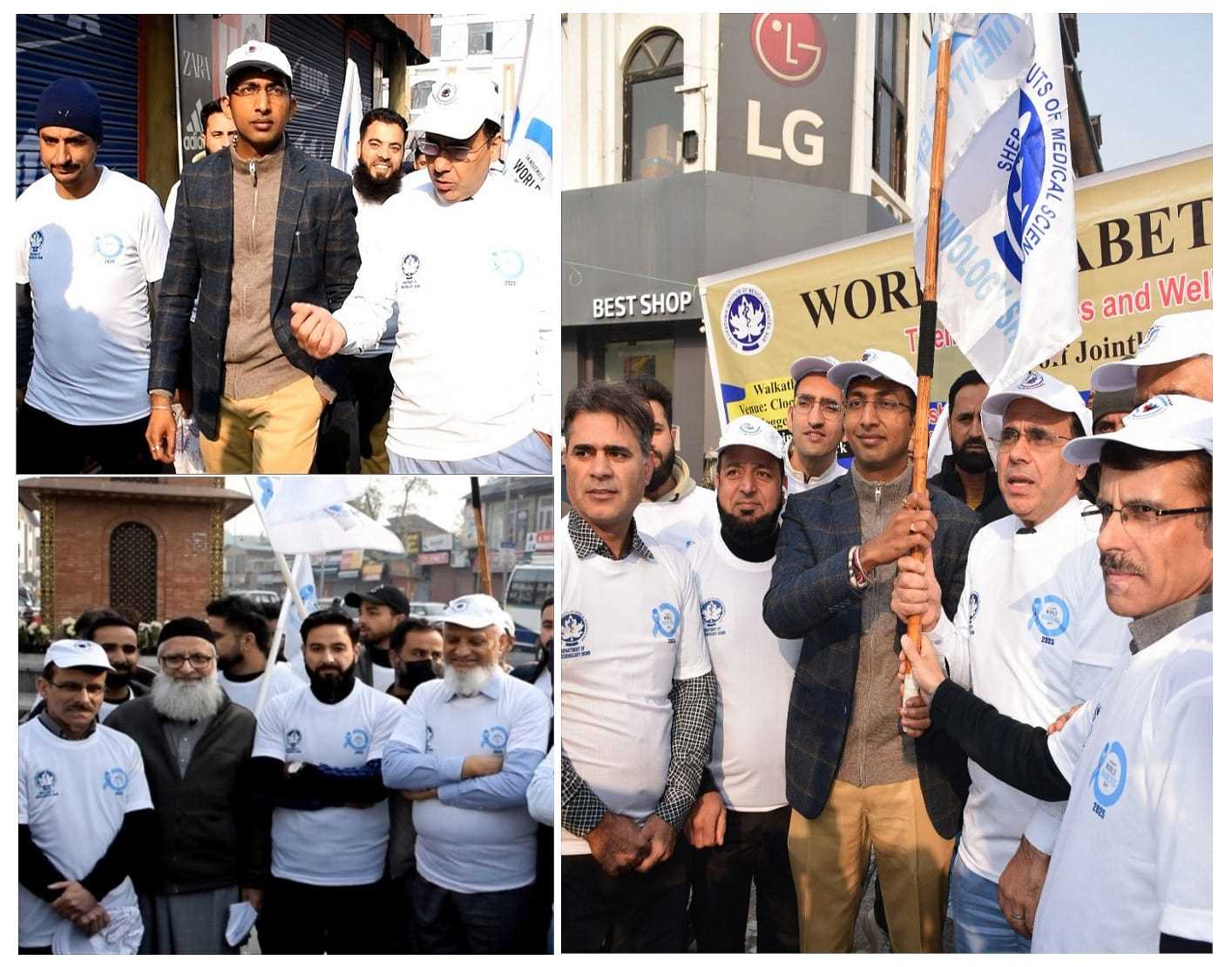 To mark World Diabetes Day, a Walkathon aimed at raising awareness about diabetes and promoting healthy living was jointly flagged off today by Divisional Commissioner Kashmir,  Anshul Garg, and Director SKIMS & EOSG, Prof. M. Ashraf Ganie at the iconic Clock Tower (Ghanta Ghar), Srinagar.