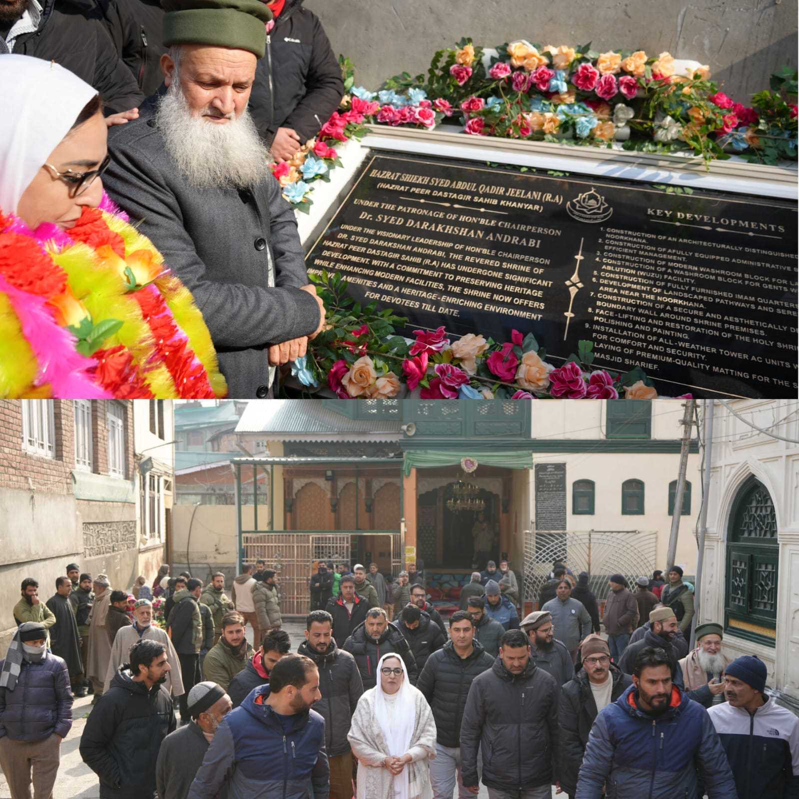 Srinagar,Jan 7: Continuing the developmental journey of the Jammu & Kashmir Waqf Board, Chairperson Dr Syed Darakhshan Andrabi on Wednesday dedicated several new infrastructural works to the public at the historic shrine of Peer Dastgir Sahib in Khanyar, Srinagar.
