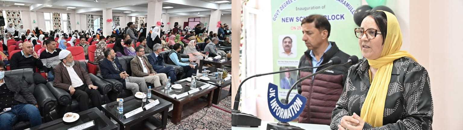 Baramulla, April 25: Minister for Health & Medical Education, Social Welfare and Education, Sakeena Itoo, on Saturday inaugurated a newly constructed Science Block at Government Degree College (Women) Baramulla and laid foundation stones for several key infrastructure projects in the district.
