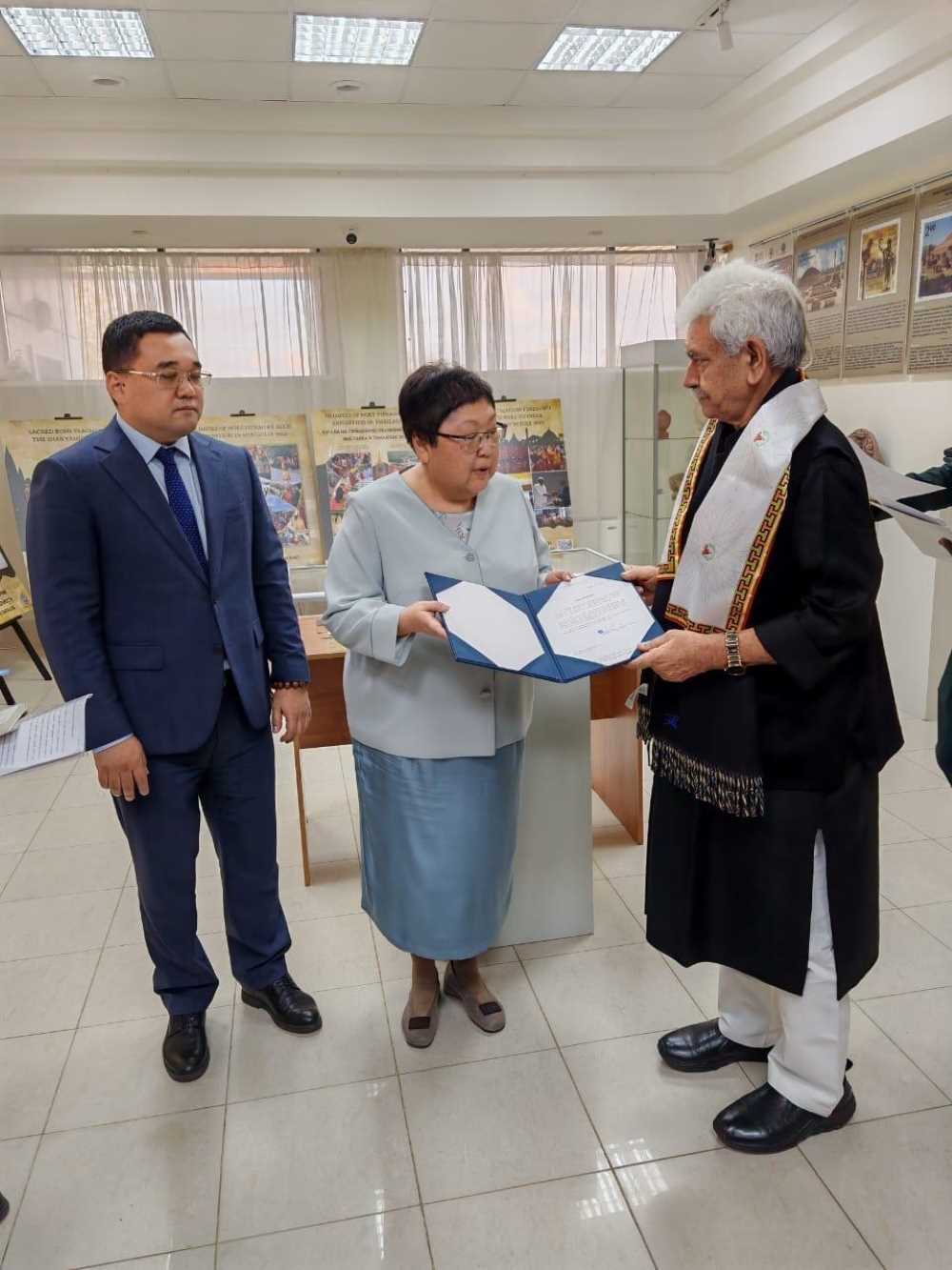 The Lieutenant Governor Shri Manoj Sinha today handed over the exhibitions belonging to International Buddhist Confederation and the National Museum to the Kalmyk Museum at Elista, Republic of Kalmykia, Russia.