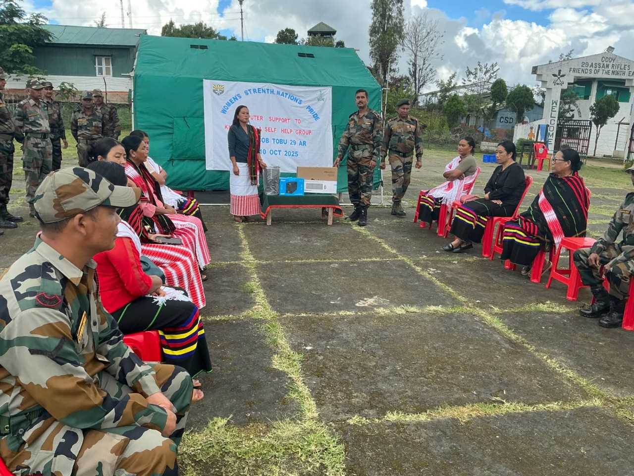 Nagaland, Oct 10: Under the banner “Women’s Strength, Nation’s Pride,” Assam Rifles donated a computer set to the Konyak Naga Mothers’ Organisation (KNSK), Tobu Unit, in Mon District, Nagaland.