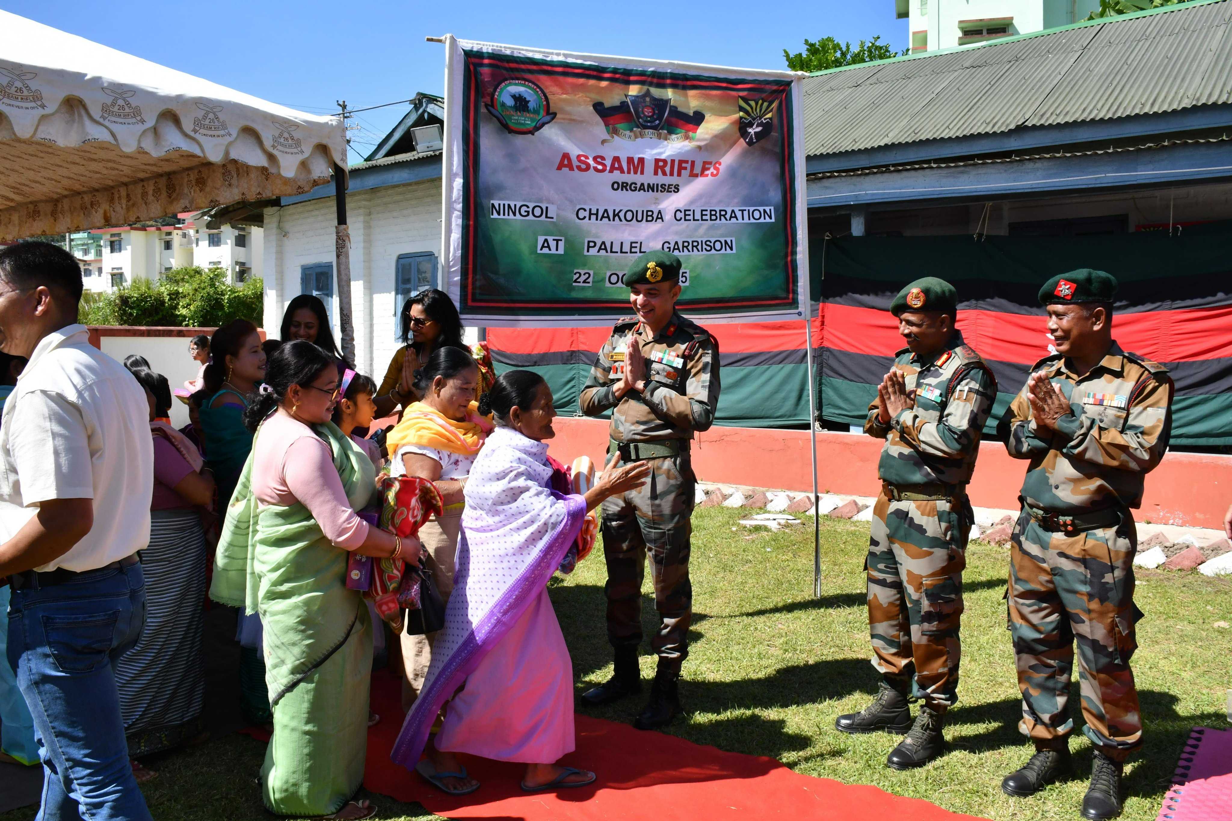 Manipur, Oct 23: The Assam Rifles celebrated the vibrant Manipuri festival of Ningol Chakouba with the people of Manipur, fostering unity, cultural pride, and community bonding. The festivities took place across Kakching, Pallel, and Bijoypur on October 20 and 22, 2025, bringing together locals and security personnel in joyous celebrations.