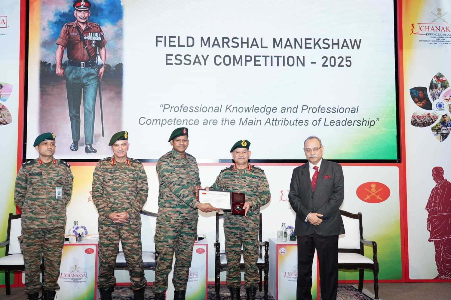 New Delhi, Oct 31: Capt Yara Vijaya Simha Naidu of the Assam Rifles was felicitated by General Upendra Dwivedi, PVSM, AVSM, Chief of the Army Staff, for his exemplary performance in the highly prestigious Field Marshal Sam Manekshaw Essay Competition. The award was presented during the 2025 edition of the Chanakya Defence Dialogue – Young Leaders Forum, held on 31 October 2025, a platform that brings together the brightest minds and emerging leaders in defence and strategic affairs.