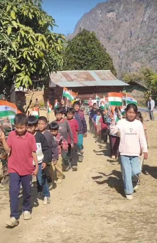 Kohima, Jan 24: Assam Rifles organised a Run for Unity and National Flag March on 23 January 2026 at Hakkomute Village, Kiphire District, Nagaland, as part of its Civic Action Programme. The initiative aimed to promote national integration, patriotism, and unity among children and youth of the region.