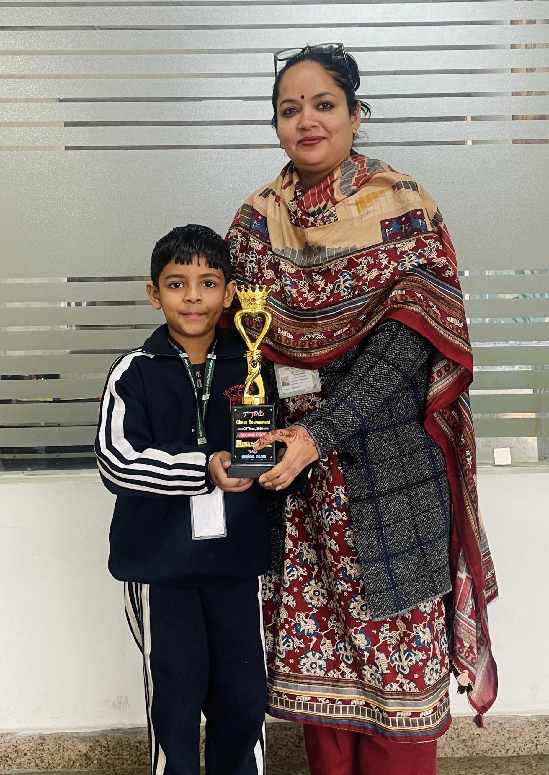 Kathua, Nov 27 :Delhi Public School Junior Kathua is delighted to celebrate the outstanding achievement of Avyaan Gupta, a talented and spirited student of Class 1, who has brought immense honour to the school by securing second place in the prestigious 7th JMD Chess Tournament held in Jalandhar. The tournament, known for its competitive spirit and disciplined conduct, witnessed participation from several promising young players across the region. Amid such a dynamic and challenging environment, Avyaan’s performance remained consistently impressive, making his accomplishment truly commendable.