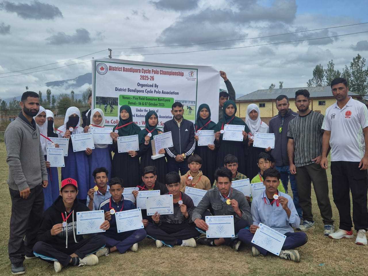 The District Bandipora Cycle Polo Championship 2025-26 successfully wrapped up on the 5th and 6th of October 2025 at the Ganastan Play Field in Bandipora. Over these two days, more than 140 male and female athletes from various private and government institutions and clubs showcased their talent and sportsmanship under the AAG Boys and Girls categories.