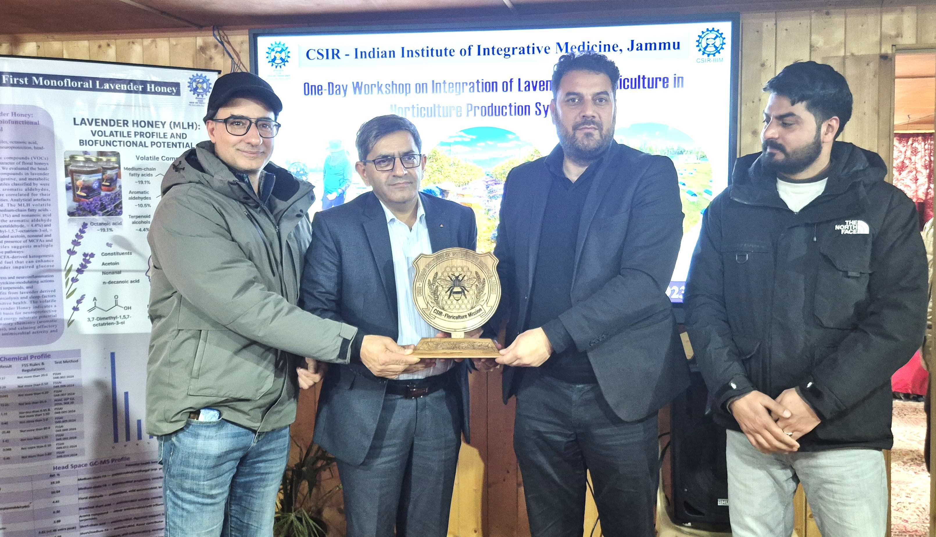 Pulwama, Feb 11: CSIR-Indian Institute of Integrative Medicine (CSIR-IIIM) organized a One-Day Workshop on “Integration of Lavender and Apiculture in Horticultural Production Systems” at its Field Station, Bonera, Pulwama. The programme witnessed enthusiastic participation of more than 100 apple orchardists from Pulwama, Anantnag, Budgam, Srinagar, Baramulla, Kulgam and Shopian districts of Jammu and Kashmir.