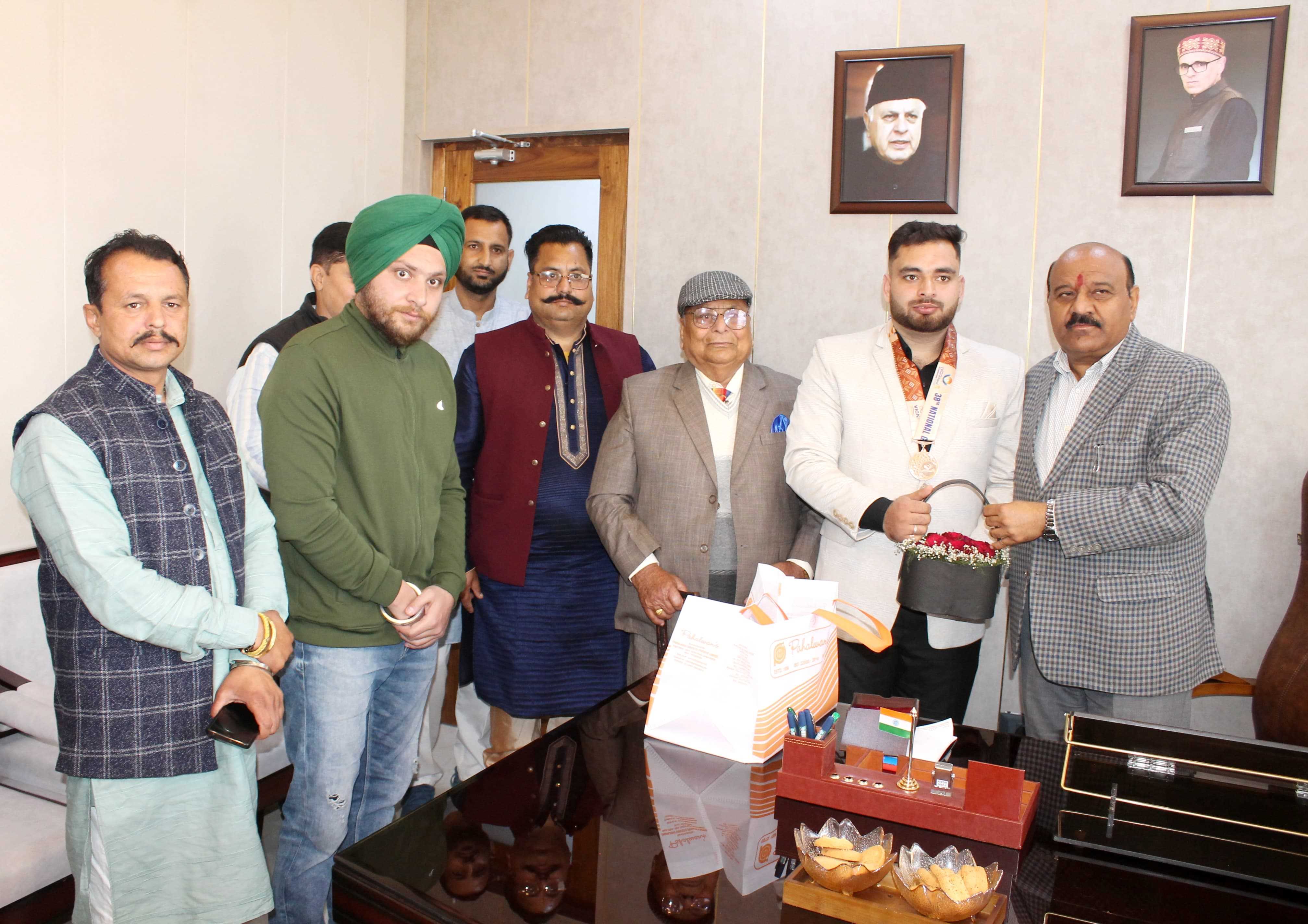 Deputy Chief Minister, Surinder Choudhary, today felicitated Rajat Singh Chib, Bronze medalist in Judo event at the 38th National Games held recently in Dehradun, Uttarakhand.