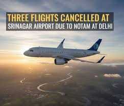 Srinagar, Jan 22: At least three flights to and from Srinagar Airport were cancelled on Thursday following a NOTAM issued at Delhi Airport due to Republic Day arrangements, officials said.