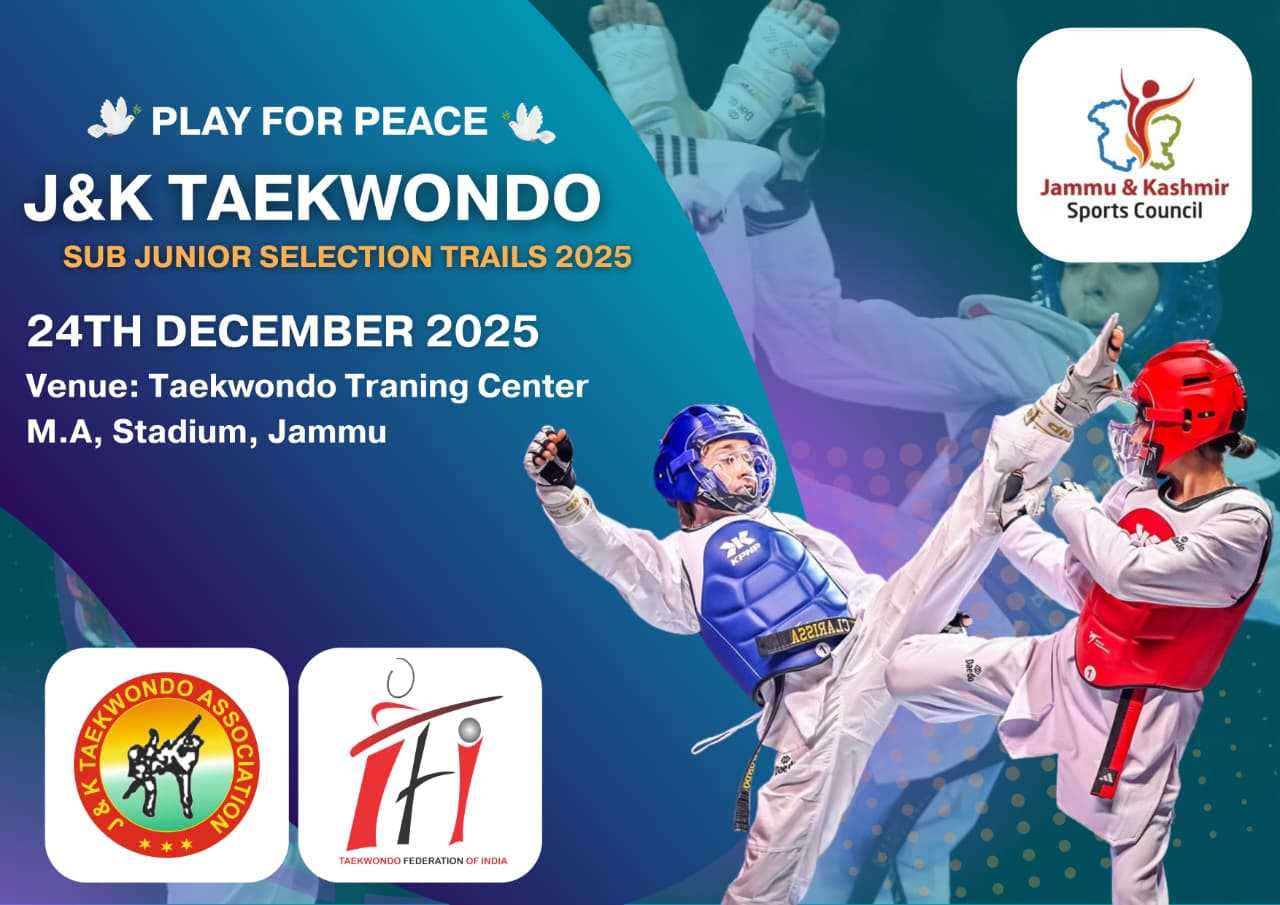 The J&K Taekwondo Association (JKTA) is going to organise the J&K Sub-Junior Taekwondo Selection Trials 2025–26 on 24th December 2025 at the Taekwondo Training Centre, M.A. Stadium, Jammu.