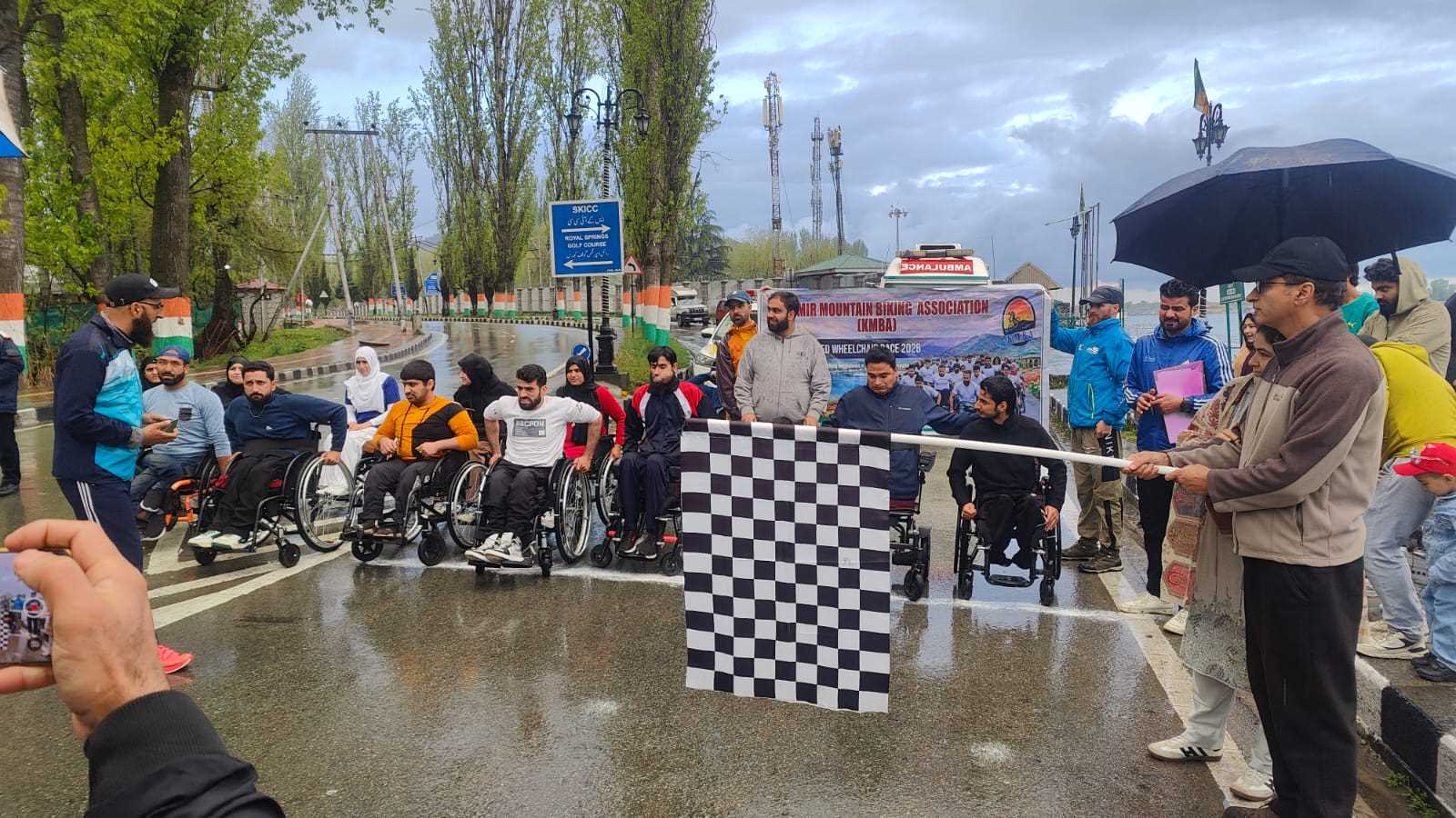 Srinagar, April 9: The Kashmir Mountain Biking Association (KMBA) successfully organized a Specially-Abled Wheelchair Race from SKICC to Botanical Garden, Srinagar. The event aimed to promote inclusion, resilience, and equal opportunities in sports.