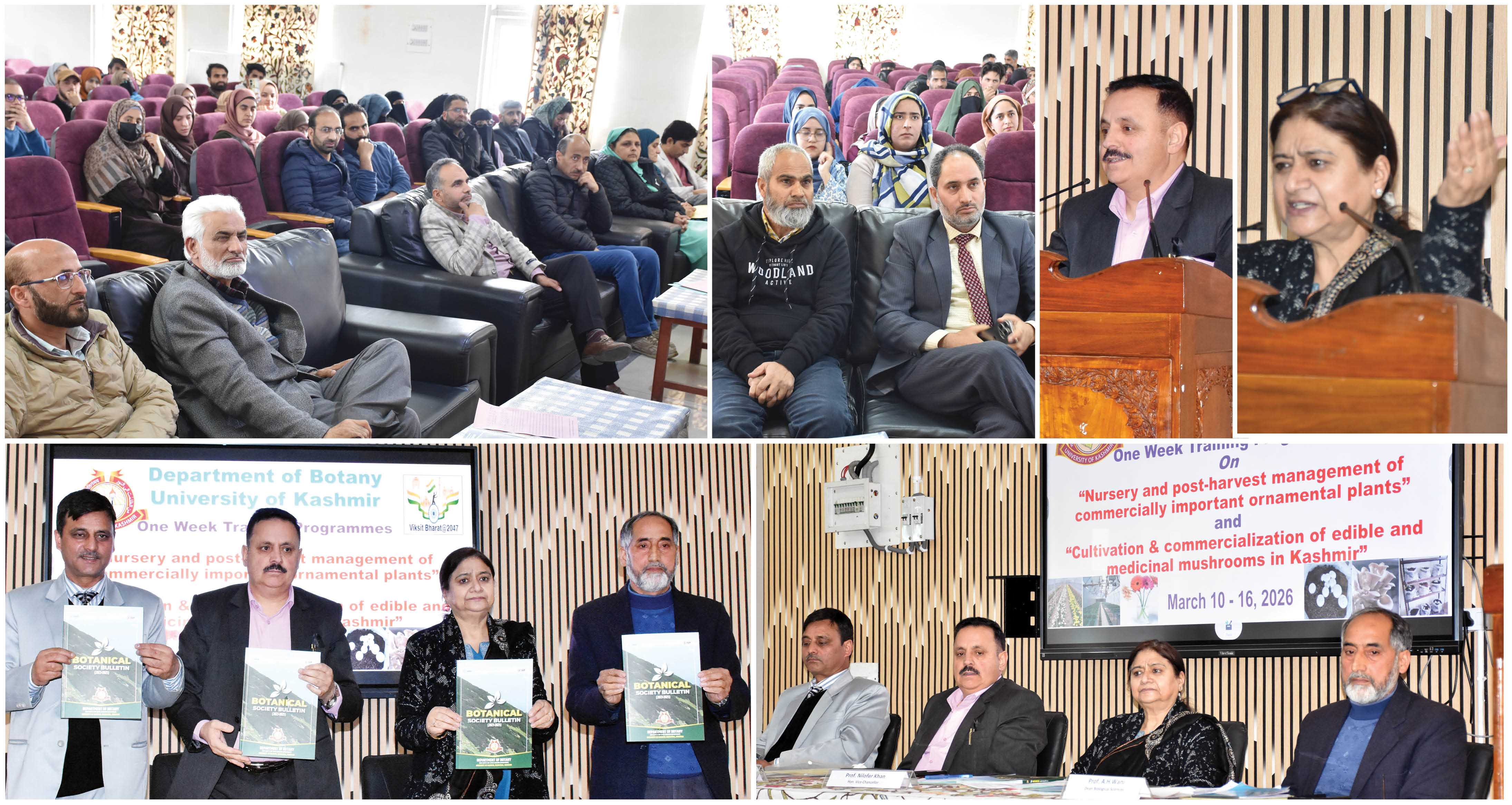 Srinagar Mar 17: The University of Kashmir (KU) on Monday concluded week-long entrepreneurship training programmes on “Nursery & Post-Harvest Management of Commercially Important Ornamental Plants” and “Cultivation & Commercialization of Edible and Medicinal Mushrooms in Kashmir” at the Main Campus.