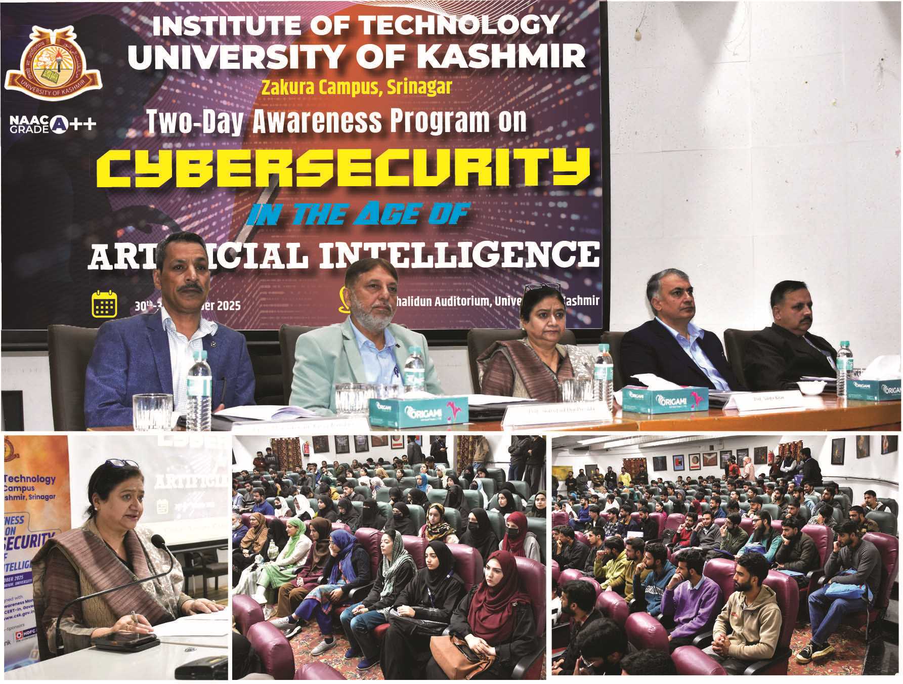 The Institute of Technology (IoT), Zakura Campus, University of Kashmir (KU), organised a two-day awareness programme on “Cybersecurity in the Age of Artificial Intelligence” at the university’s Main Campus, aligning with the observance of global cybersecurity awareness month.